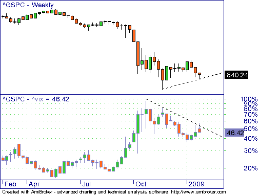 Torman Januar 22, 2009 Zum Abschluß die Gegenüberstellung vix/s&p, die auf der einen Seite an Eindeutigkeit kaum zu überbieten ist, in der Rückbetrachtung mit der gleichen Begründung jedoch leider auch im September ein Fehlsignal generiert hat. Mir ist völlig unklar welche zusätzlichen Informationen aus der impliziten Vola abgelesen werden können. Die Vola steigt immer dann, wenn der Markt fällt und umgekehrt. Also reicht eigentlich die Kursentwicklung als Info. Diesen Beitrag teilen Link zum Beitrag