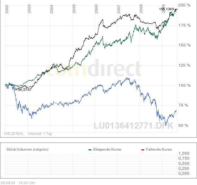 Dennoch denke ich, dass eine 50:50 Gewichtung der beiden eine ganz gute "Mischfond"-Position im Gesamtdepot darstellt, die nicht wie ein Aktienfonds nur auf Rendite abzielt sondern zur Erhaltung der eingezahlten Geldmenge.
