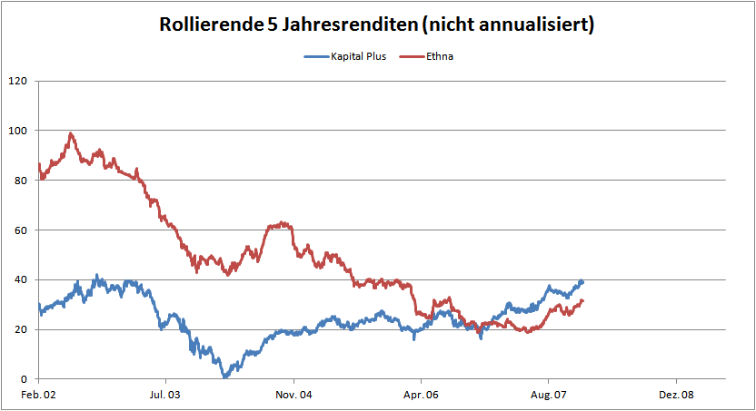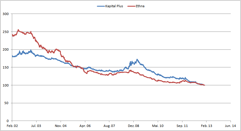 Fondsanleger1966 Dezember 31, 2012 Der Kapital Plus hat bei einem deutlich höheren MDD deutlich schwächer performt: http://www.fondsweb....0136412771-R120 Der alte Trick: passenden Zeitraum gesucht und gefunden Nö, es ist der Zeitraum (fast) seit der Auflegung des Ethna (der Kapital Plus ist älter). Seit Auflegung sieht es noch etwas besser für den Ethna aus. Manchmal ist es schon reichlich ernüchtern, wie wenig sachgerecht hier oft Fonds analysiert und verglichen werden. Ein vermögensverwaltender Fonds wie der Ethna kann nicht nach den selben Maßstäben bewertet werden wie ein relativ starres Benchmark-Produkt wie der Kapital Plus, der als solcher aber auch einen guten Job macht. Er ist halt nur nicht der "bessere", sondern verfolgt einen anderen Ansatz. Diesen Beitrag teilen Link zum Beitrag