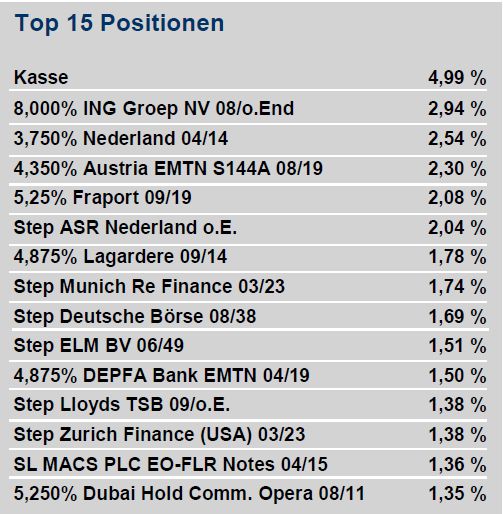 slt63 März 26, 2010 Es gibt eine neue Broschüre zum Ethna Aktiv. Hallo, ich interessiere mich sehr für den Ethna. In der Broschüre steht, dass nur Staatsanleihen über 5% jeweils das Depotvolumen dominieren. Auch solche mit schlechterem Rating. Mein Problem ist nun, wo kann man sehen welche Anleihen der Fonds derzeit hält ? Dazu habe ich bisher noch nichts finden können. Hat für mich jemand einen Tipp wo ich das sehen kann ? Michael Wo bitte soll das stehen? Ich hab nur das gefunden (S.11): "Um eine tiefgreifende Diversifizierung des Portfolios zu gewährleisten und eine stetige Entwicklung des Ethna-AKTIV E zu ermöglichen, ist keine Position (mit Ausnahme von Staatsanleihen mit einem Rating von AAA) mit mehr als 5 Prozent gewichtet." Diesen Beitrag teilen Link zum Beitrag