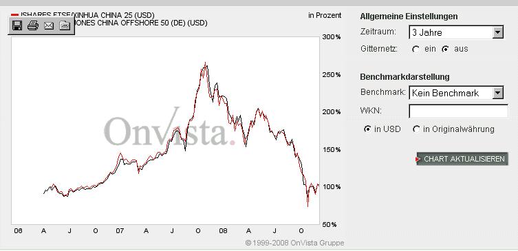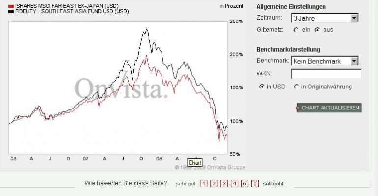 Fohlenboy Dezember 7, 2008 Ach Fohlenboy... wann löst du dich denn endlich mal davon, die Vergangenheitsperformance als Hauptpunkt anzuführen? Ist dir klar, dass Performancebetrachtungen IMMER vom Augenblick der Betrachtung selbst abhängen? Im Anhang mal ein Vergleich. M&G gegen den SSgA Indexfonds World (WKN 588807,bildet den MSCI World ab), immer auf 5-Jahressicht. Blau: Indexfonds Schwarz:M&G 1. Bild: Betrachtung mit den Augen eines Anlegers Anfang 2007. Der Indexfonds schlägt den M&G und liegt in der gesamten Betrachungsperiode über ihm. 2. Bild: Ein Jahr später. Betrachtung mit den Augen eines Anlegers Anfang 2008 Der M&G schlägt den Indexfonds. Letzterer liegt fast die gesamte Zeit unter dem M&G. Und noch ein Vergleich. M&G gegen den DWS Global Value (WKN 939853, als ersatz für den Top Dividende), immer auf 5-Jahressicht. Blau: DWS Schwarz: M&G Wir betrachten einmal den 5-Jahresvergleich vom Anfang Oktober 2006. Der DWS schlägt den M&G und liegt wärhend des Betrachtungszeitraumes stets über ihm. Und nun der 5-Jahresvergleich Anfang 2007, also 3 Monate später. Das Bild hat sich deutlich geändert. Nun führt der M&G. Jetzt dürfte dir auffallen, des solche Betrachtungen rein garnix bringen oder? Die Wahl des Bezugspunktes ist entscheidend. Ließ dir den Verkaufsprospekt des M&G durch. Du wirst feststellen das er nicht in England investieren darf. Ob man das will oder nicht ist jedem selbst überlassen. Wegen den ETF's: Mir kommt es irgendwie so vor, als wüsstest du garnicht so richtig, was die ETF's überhaupt nachbilden. Dort wird nicht aktiv nach "guten" Aktien gesucht. Da gibt es keinen Manager der ein großes Research betreibt. Sie bilden simpel einfach ein Index nach. Der Index berechnet sich nach festen Regeln. (wie z.b. der DAX) Weil das Management wegfällt, sind ETF's (genauer: passive ETF's) auch so günstig. Ich weiß sehr wohl, dass die ETF's einen jeweiligen Index nachbilden. Man kann aber doch z.B. anhand Daten, die die vergangenen 5 Jahte betrachten, erkenne, ob ein Fonds konstant über oder unterperformt hat....wenn z.B. ein Fonds konstant schwächer als ein anderer gewesen ist, kann dies doch zeigen, dass vielleicht eher der zweite Fonds besser ist, gerade bei einem langen Betrachtungszeitraum. Was ist denn bzgl. meine Frage zu dem breiteren 50er oder dem kompakteren 25er China ETF? Die von mir "vorgeschlagenen" Fonds sind ja sicherlich alle nicht wirklich schlecht, aber ich würde mich sehr freuen, wenn Ihr mir eine kleine Entscheidungshilfe geben könntet, also z.B. eher den M&G oder den Top Dividenden Fonds, China Focus oder einen der ETFs, dann entweder den ETF Asien oder den aktiven Fidelity Asien usw. Danke Diesen Beitrag teilen Link zum Beitrag