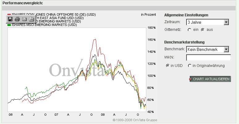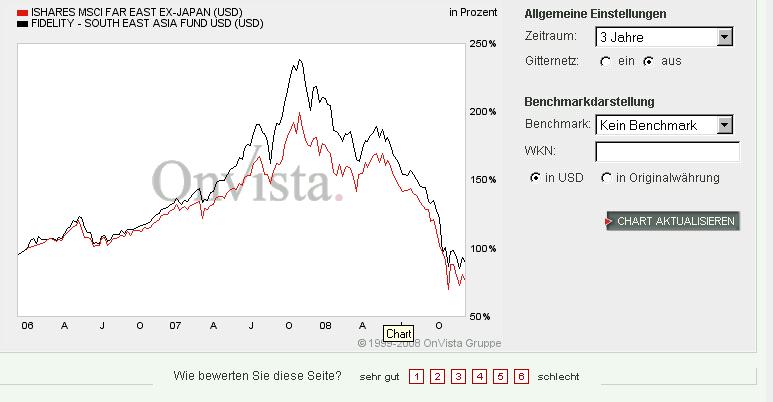 Fohlenboy Dezember 7, 2008 · bearbeitet Dezember 7, 2008 von Fohlenboy Der Astra ist, wie ich schon erwähnte, ein europäischer Mischfonds, während der Top Dividende zu nahzue 100% in Aktien investiert.Wenn man sich das vor augen hält, so hat in der Krise der Top Dividende mit 100% Aktienanteil das gleiche geleistet wie der Astra mit geringem Aktienanteil. Der Astra hätte eigentlich einen deutlich geringeren Verlust einfahren müssen, da er auch sehr in defensive Papiere investiert. Nun, wenn ein Weltfonds dauerhaft zu 1 drittel oder gar zur guten Hälfte aus einem einzigen Land besteht, ist das eher kritisch. Temporäres Übergewichten einzelne Länder ist in Ordnung. Schließlich erwartet man das ja von einem aktiven Fonds. Aber dauerhaft so stark in einem Land vertreten zu sein, erscheint mir nciht sinnvoll. Der Fonds nennt sich zwar Growth, ist in Wirklichkeit aber eher Value bis Blend. Er ist etwas teurer als der Top Dividende, aber ein recht solider Fonds. 1)Mir scheint der M&G Global Growth etwas besser zu sein, beide haben ähnliche Verläufe, nur ist und war das Niveau beim M&G in den letzten 5 Jahren schon höher, spricht etwas dagegen ihn vorzuziehen? Ich werde ja nun auf jeden Fall einen Teil des Investments entweder in einen weltweiten Emerging Market oder einen asiatischen/chinesischen Fonds/ETF packen. Bei dem Chinesischen schwanke ich einerseits zwischen dem Fidelity China Focus und andererseits zwischen dem ISHARES FTSE/XINHUA CHINA 25 und dem ISHARES DOW JONES CHINA OFFSHORE 50 (DE). 2)Wie man an dem Namen erkennen kann, unterscheiden sie sich in der Anzahl der investierenden Unternehmen, also 25 zu 50. In den letzten drei Jahren (der 50er ist nicht älter) war der 25er etwas stärker. Ist es hier egal, welchen der beiden man nimmt oder kann man generell sagen, dass ein eher breiter aufgestellter Fonds (50er) besser ist als ein kleinerer Investitionskreis (25er) oder ist es andererseits eher besser nur in einen kleineren Kreis zu investieren, da sich vielleicht 25 sehr gute oder gute Unternehmen finden, nicht aber 50 gut oder sehr gute. 3) wie man sehen kann, hebt sich der Fidelity China Focus nicht wirklich deutlich von den beide ETF's ab.Zwischendrin gibt es aber immer Phasen, in denen sich der Fidelity aber doch absetzen kann. Würdet Ihr trotzdem eher zu einem der beiden ETF's raten, da der Unterschied insgesamt einfach nicht groß genug ist? 4) Eine weitere Möglichkeit anstelle eines China Fonds wäre der Fidelity South East Asia WKN 973276 oder der iShares MSCI AC Far East ex-Japan DE A0HGZS. Würdet Ihr mir hier zustimmen, dass in diesem Fall der aktive Fidelity Fonds besser wäre als der ETF? Kostenmäßig müsste der Fidelity eine 1% höhere Rendite pro Jahr aufweisen, um die höheren Managementgebühren auszugleichen. 5) Schaut man sich dann abschließend den Vergleich der zwei besten Emerging Market ETF's und je einem reinen China und Asienfonds an, so ist doch recht deutlich, dass zweitgenannte vorzuziehen wären bzw. in normalen Zeiten (2008 gehört ja nicht dazu) bessere Performanceleistungen zeigen. Auch hier würde ich mich über eine Einschätzung freuen. Danke Diesen Beitrag teilen Link zum Beitrag