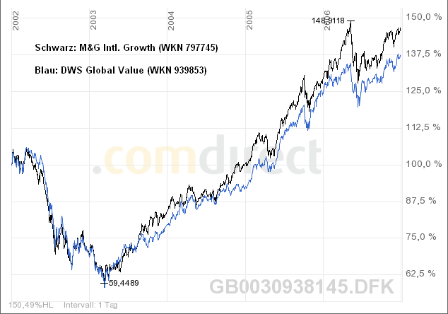 D-Mark Dezember 7, 2008 Genau, soviel zu der Charttechnik! Charten = Kaffesatz lesen... Was wir glaube ich noch nie erwähnt haben: Von M&G gibt es auch einen sehr guten England-Fonds (also für die Maßstäbe einer Länderwette!): M&G Recovery A GB0032139684 (thesaurierend). Wenn man den mit 10% zum Intl.Growth dazumischt, passt die Sache wahrscheinlich. Wer einen anderen Weltfonds mit hohem Englandanteil hält, benötigt das nicht, ebenso wie bei Europafonds resp. Euro Stoxx dingsbums. Diesen Beitrag teilen Link zum Beitrag