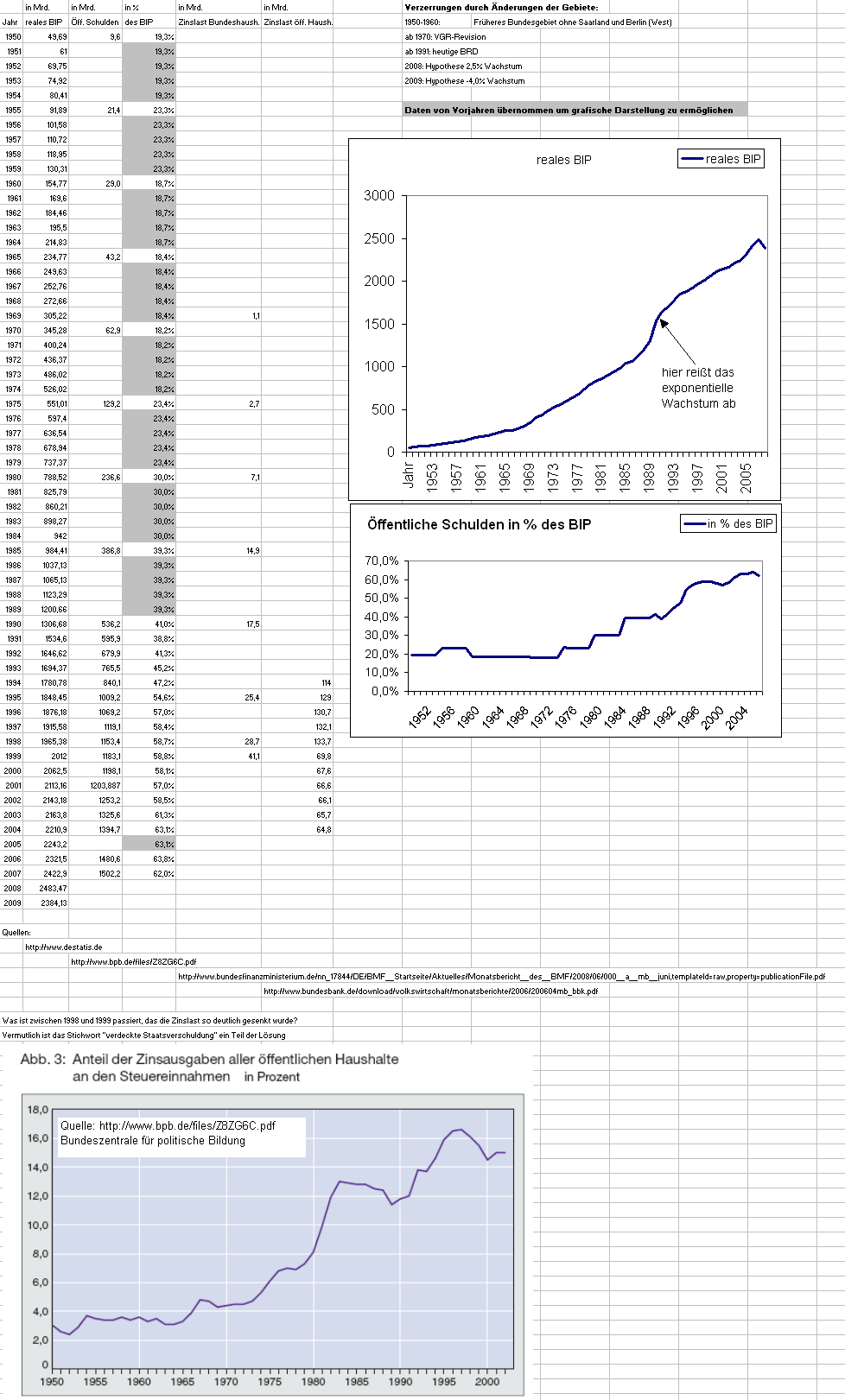 Schulden werden halt schon weniger wenn man sie konstant hält einfach weil das Geld inflationiert. Desweiteren entsteht nicht automatisch permanent immer mehr Zinseszins wenn die Schulden komplett bedient werden und man neue Schulden aufnimmt. Und es war eben soweit ich weiß dieses Jahr in Deutschland so, dass die Schulden zwar gestiegen ist der % Anteil der Ausgaben für Schulden am gesamten Haushalt eben gesunken sind weil die Einnahmen eben noch stärker stiegen als die Zinslast. Wenn man die Schulden von Deutschland seinem "Besitz" gegenüberstellt (also Infrastruktur , Einfluss ,Möglichkeit Steuern zu erheben ect ) dann glaub ich nicht dass unser Land sonderlich überschuldet ist auch wenn man sicher aufpassen mus dass die Staatsverschuldung überschaubar und kontrollierbar bleibt. Auch muss man ja sehen dass die Investitionen des Staates nicht einfach im nichts verschwinden sondern evtl auch wieder mehr Einnahmen generieren.
