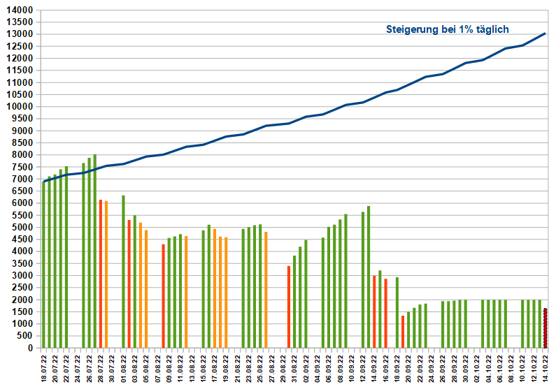 tradefrog Oktober 14, 2022 in diesem speziellen fall, und um nicht noch mehr zeit, zu verlieren, werden wir akzeptieren müssen, daß die 200€ plus dzt! nicht wiederholbar sind , und somit auch ein kleines plus, wie ein niederes zweistelliges minus, zum tradeende führen kann... der frosch wird das dann situationsbedingt entscheiden... da die tagesschwünge ein 2 stelliges tages%ergebnis zulassen, gehen, mit jedem tag, mehr im trade, diese halt verloren... dzt 400€ minus... Diesen Beitrag teilen Link zum Beitrag
