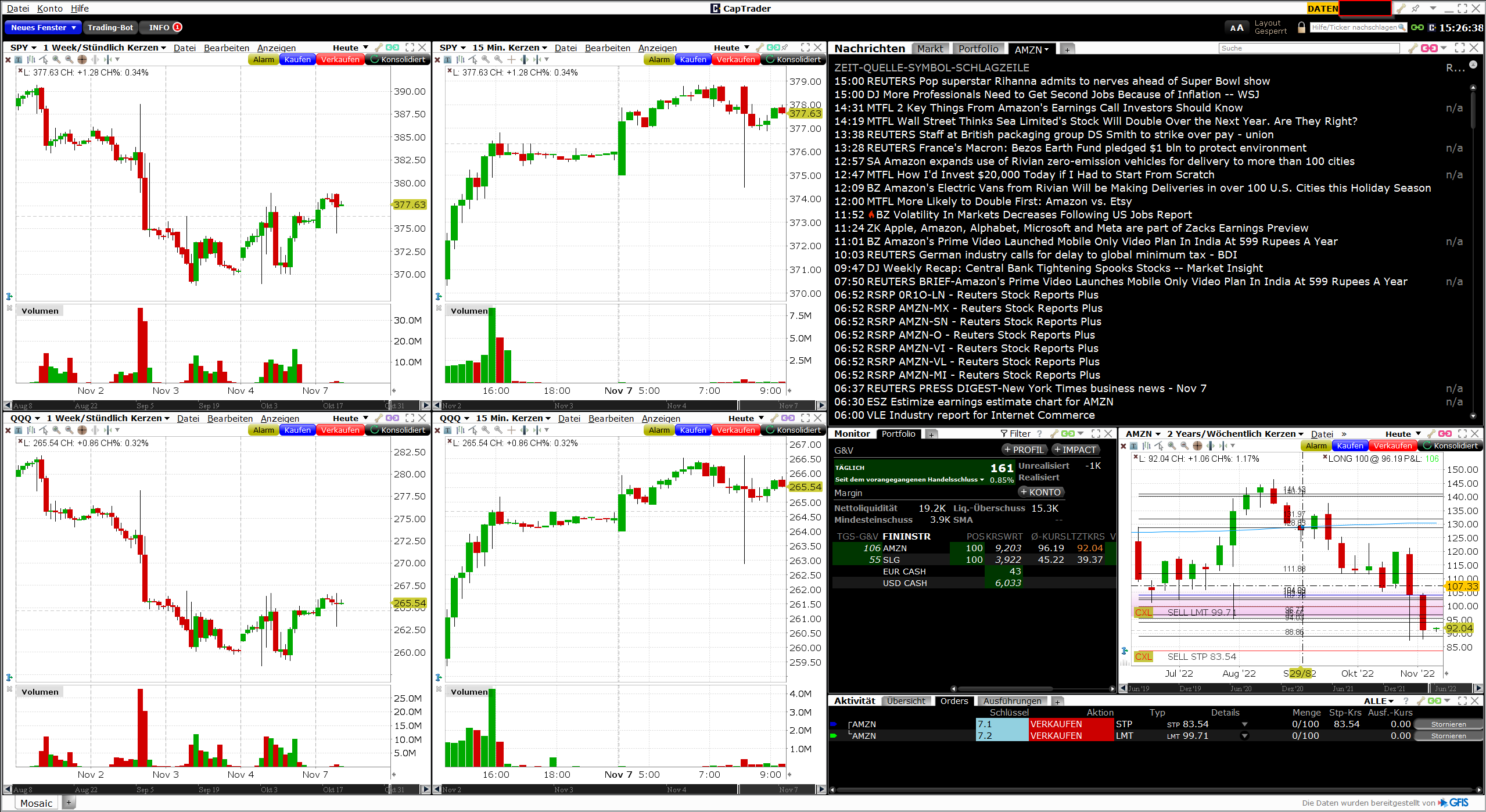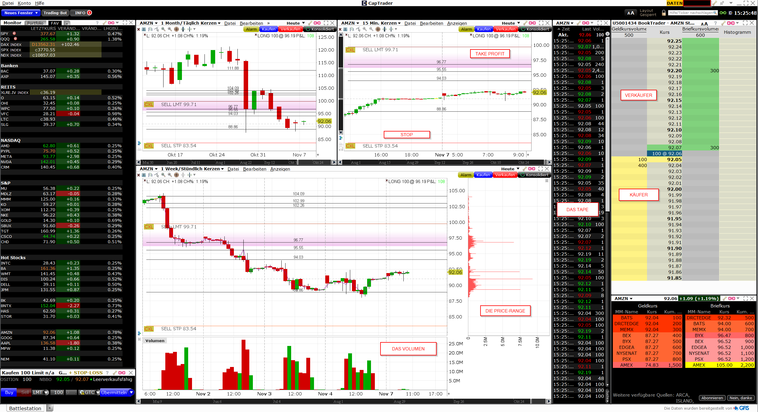 Cinquetti November 7, 2022 vor 3 Stunden von oldo29: Nein, du hast 600$ gewonnen, nicht verdient. So einfach ist das leider nicht Du musst schon hart arbeiten und Zeit investieren, wenn Du beim Trading Geld verdienen möchtest. Das fängt zunächst mit der Erstellung eines Handelsplanes vor Börsenbeginn an: Ich lese News und Quartalsergebnisse und erstelle eine Liste mit potentiellen Long- und Shortkandidaten Ich muss die Price-Ranges für die Aktien die ich traden will festlegen: wo sind die Unterstützungszonen, wo die Widerstände, sind die Aktien überkauft, wie schaut der RSI aus, wieviel Tage in Folge gab es einen Abverkauf, wie sieht der Trend aus? Ich Schaue mir Fugmann und die Opening Bell von Markus Koch auf YouTube an, um ein Gefühl für den Markt und das Sentiment zu bekommen Stehen für den Tag wichtige Daten oder Termine an? z.B. Arbeitsmarktdaten, FED-Sitzungen usw. - diese müssen unbedingt beachtet werden Ich trade nur amerikanische Aktien, deswegen geht die Show aktuell um 14:30 Uhr los. Die ersten 5 Minuten gerade bei Earnings sind sehr hektisch. Ich arbeite in der ersten halben Stunde im 1-Minuten-Chart und beobachte mehrere Charts gleichzeitig. Ich habe 3 Monitore. Ganz rechts beobachte ich den Gesamtmarkt: Den S&P bzw. den Spyder, also den ETF -> das ist für Value-Werte interessant Den Nasdag-100, bzw. den ETF NQQ -> Wie performen Tech-Werte heute? Aktuelle News Wenn der gesamte Markt am Fallen ist, macht es keinen Sinn long zu gehen. Du kannst nicht in einen Wald reingehen und einen Baum fällen, wenn der Wald brennt. Ganz links habe ich meine Watchliste, also die Kandidaten die ich für meinen Handelsplan vorbereitet habe. Hier habe ich 12 Werte, die ich im 15-Minute-Chart beobachte und auf interessante Patterns und den Trend schaue: In der Mitte habe ich die "Battlestation" , wo das Trading stattfindet. Hier schaue ich mir die Aktie, die ich traden will in mehreren Zeitebenen an: Im 1-Minute und 15-Minuten-Chart, im Wochenchart mit stündlichen Kerzen und im Monatschart mit Tageskerzen Das TAPE, welches die ausgeführten Orders anzeigt Die Level-2-Daten (ganz rechts), hier schaue wie das Verhältnis Angebot zu Nachfrage ist. Ist das Interesse an der Aktie große oder findet ein Sell-Off statt? Wenn mir ein Candlestick-Pattern gefällt, das Chance-Risiko-Verhältnis, die Uhrzeit und das Volumen stimmt, gehe ich einen Trade ein. Das erfolgt beim Scalpen in Sekundenschnelle und wird per HotKeys ausgelöst, dabei werden 3 Orders gesetzt: Die eigentliche Kauforder, meistens über 100 Stück, ein Take-Profit und ein Stop-Loss Ich muss genau wissen, was ich für eine Aktie trade. Ist es Kernschrott wie Peleton oder eine Qualtitätsaktie wie Coca-Cola, danach richtet sich mein komplettes Risiko-Management aus. Bei einem guten Werte habe ich einen weiten Stop-Loss, bei einem spekulativen Wert wird der Stop-Loss eher eng gesetzt und eingehalten. Nervenstärke ist beim Traden sehr wichtig. Am Anfang haben mir die Hände gezittert, weil ich es nicht gewohnt war, mal einfach 10K auf den Tisch zu legen. Jetzt nach über 500 Trades, habe ich da keine Probleme mehr. Wenn ein Trade gut läuft wird der Stop-Loss nachgezogen, so dass ich auf jeden Fall im Gewinn liege. Alleine schon das Nachziehen des Stop-Loss ist eine Kunst für sich. Das Trading endet spätestens um 16:30 - danach macht es in der Regel keinen Sinn mehr, weil der Markt die großen Bewegungen gemacht hat und bei mir die Konzentration nachläßt. Am Abend findet dann das Eintragen in das Trading-Tagebuch statt. Was lief gut? Was lief schlecht? Wo kann ich mich verbessern, was für Fehler habe ich gemacht? Dazu kommt dann das Studium von Büchern und das Lernen auf YouTube bei anderen Traden wie LiveTraders oder Humbled Trader. Bis man sich so eine Trading-Workstation eingerichtet hat, das Trading und die Price-Action, die Patterns versteht und genügend Erfahrung gesammelt hat, vergehen Monate. Am Anfang macht man schon Verluste und das tut natürlich weh, aber das ist halt das Lehrgeld das man bezahlen muss. Das Ganze muss dann natürlich auch noch steuerlich abgerechnet werden. @oldo29 Meiner Meinung nach habe ich das Geld verdient und nicht gewonnen Diesen Beitrag teilen Link zum Beitrag
