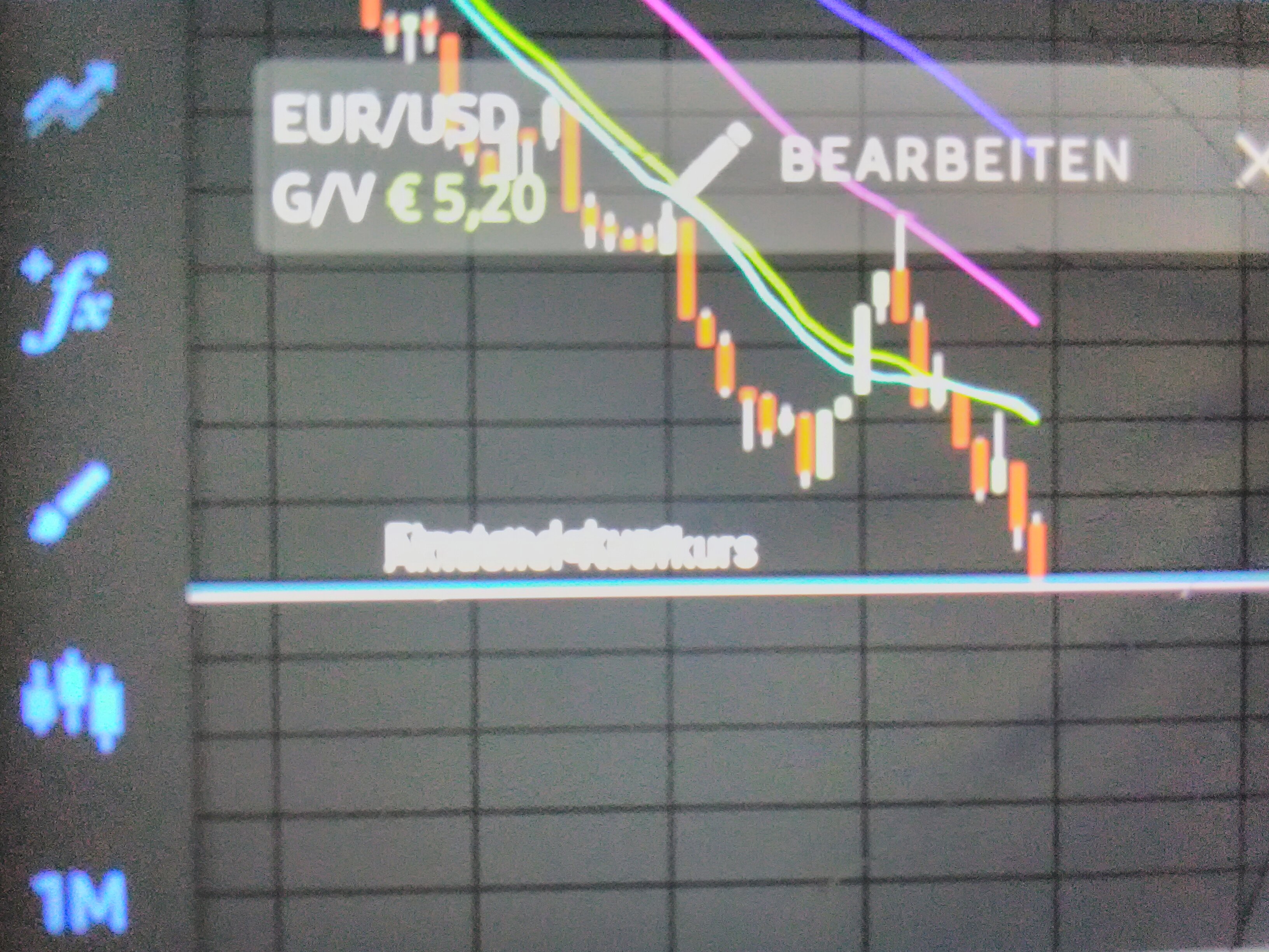 tradefrog November 30, 2022 neuer trade 7€/0,5% plus, zu den 14/1%, sind heute 1,5%... froggy gibt gas... aber wenn die swings, in der primetime, so weiter gehen, dann sind tgl, mehr als 30% drinnen... heute waren's, von 4pm bis 9.30pm, in 5,5 stunden, 2 mal 500€ also 1k... bei 1,4k sind 1k ca 70%... froggy mag forex, selbst wenn er darin, noch grün, hinter den ohren ist... Diesen Beitrag teilen Link zum Beitrag