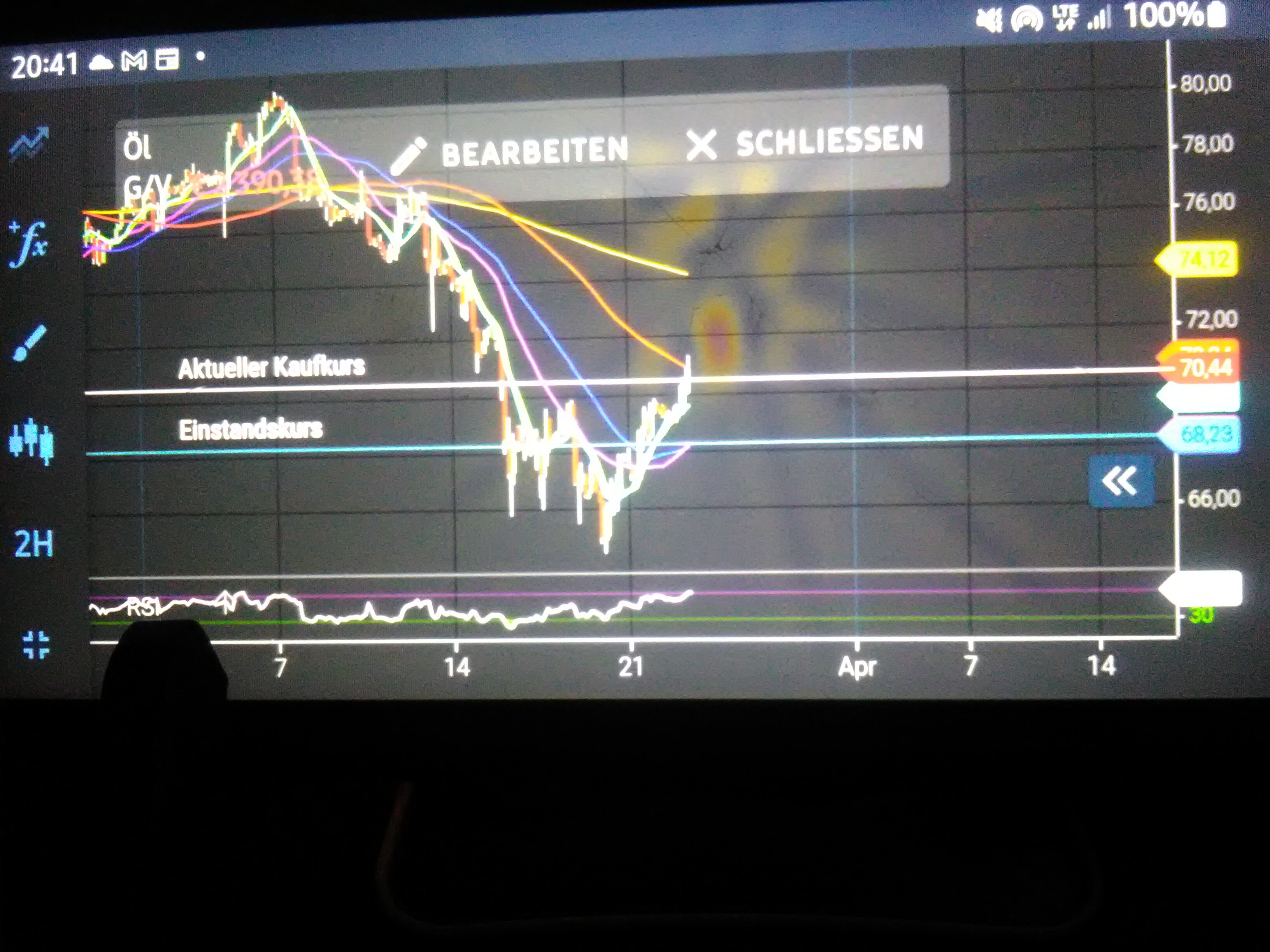 Da es so aussieht, dass es den nächsten Wochen hauptsächlich um diesen Öltrade gehen wird: Wo war denn genau der Einstieg? Hoffentlich nicht wieder am absoluten Tiefpunkt.
