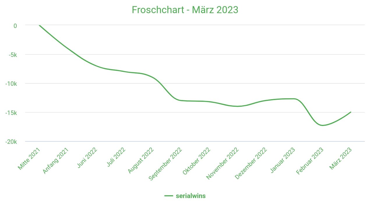 tradefrog März 31, 2023 sedativ: froggy ist sehr wohl überzeugt, von seiner strat... das einzige hindernis dzt, zum schnelleren erfolg, ist sein serienwin tick... aber ab dem 100. serial, ist das abgehakt... kann ja nicht sein, daß froggy hier nachschießen muß, wg dem blöden seriengetue... haus und hof versetzen ist nicht sein stil, er kann jederzeit mit kleiner münze neu beginnen... der ölshort geht nächste woche signifikant in froggy's richtung oder wird geschlossen, spätestens vor dem rollover, egal was am taxameter steht... sollte froggy diesen trade verlieren wäre das ein guter grund mit den serials aufzuhören, noch dazu wo froggy schon das plus hatte, aber zu gierig war es zu sacken... geschieht im recht, wenn es ihn jetzt aufbirnt... selbst bei 6k minus, wäre der verlust netto -21k vs 5k marginrest nur 16k, also 2k mehr gegenüber den 14k minus overall... und der verlust betrifft auch nur einen teil der parageldes, der main, mit 1,6k und über 1%tgl (900€/70tage), bleibt unversehrt erhalten... Diesen Beitrag teilen Link zum Beitrag