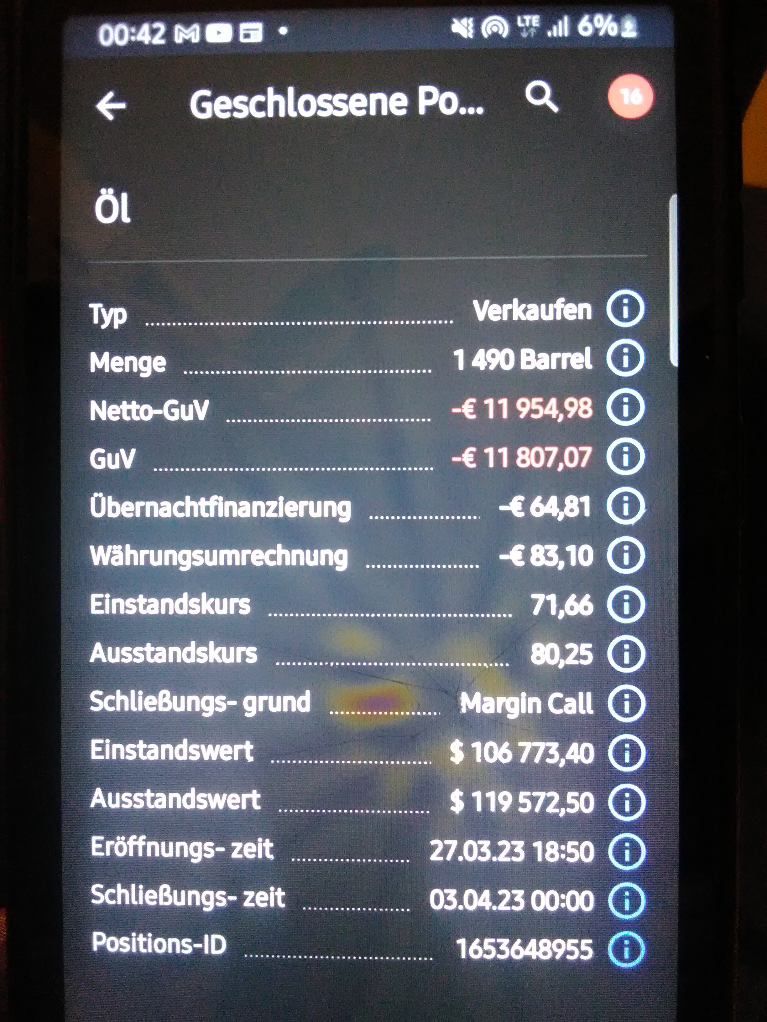 tradefrog April 3, 2023 froggy dachte nicht, daß nach den neuen gesetzen, ein totalverlust möglich ist, aber wie man sieht... gap ist gap, jetzt ist auch klar, warum nur wenige trader ihre positionen, über das weekend halten... learning by doing... und froggy wurde ausgespicket... lediglich eine einzahlung von 7k (die dann bei weiterem steigen des ölpreises auch weg gewesen wäre), hätte dies verhindert... Diesen Beitrag teilen Link zum Beitrag