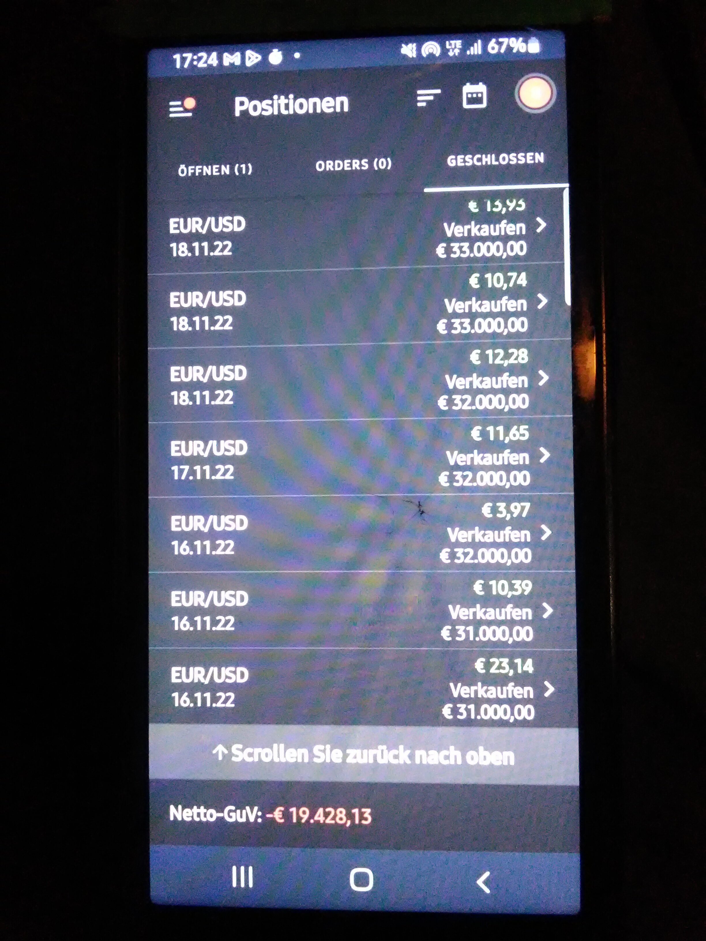 Barqu November 17, 2023 Just now, PKW said: Ich vermute nachschießen bis das allerletzte Hemd verspielt ist Allerdings sollten die Einzahlungen erhoeht werden, sonst wird das nichts mit den -100k bis Jahresende. Der Margin Call kommt ca. alle 3 Wochen. In diesem Jahr noch ca. 3 mal. Aber mit durchschnittlich 1k Einsatz reicht das gerade mal für -40k bis Silvester. Diesen Beitrag teilen Link zum Beitrag