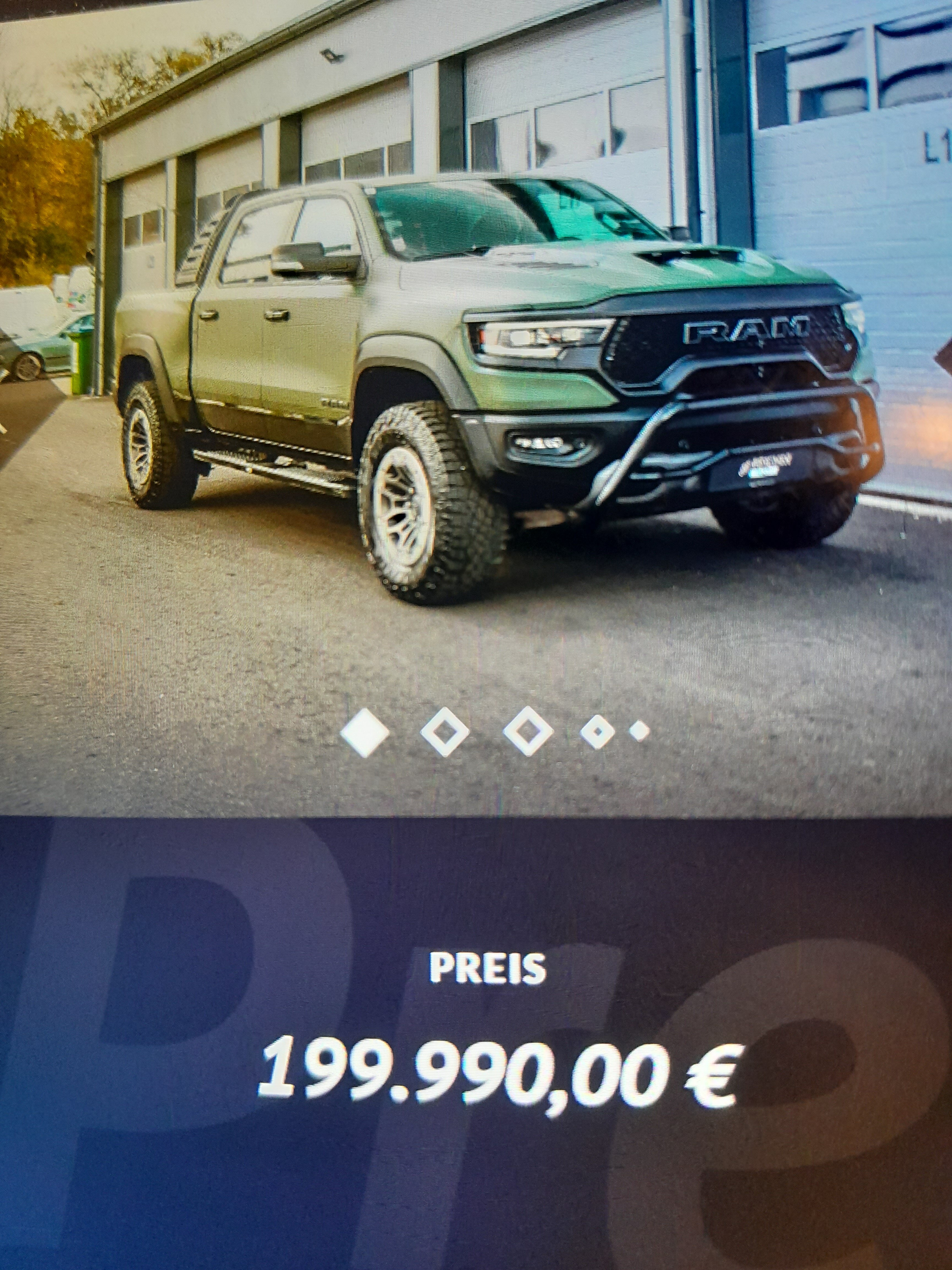 tradefrog Dezember 9, 2023 froggy hat beim stöbern, in den pickupversionen der taxifreundlichen doppelkabinen viertürer, folgendes "grüne" fahrzeug gefunden... leider hat der jungwagen kein panoramaschiebedach, ist zudem nur foliert (was sich mit dem originalrot schlägt) und nicht, mit dem gewünschten sparsameren v6 benziner ausgestattet... gäbe zwar auch 2 dieselversionen, aber diesel ist nicht mehr, unser revier... gibt es auch als 48v mildhybrid... wenn man etwas spezielles will, dann muß es es neu erwerben... so ein pickuparbeitstier mit absenkbarer luftfederung, wäre trotz hohem finanzbedarf, weniger prollig, als ein luxussuv (btw kan er 5,7t ziehen, was für das prollige schnellboot von vorteil wäre)... obwohl so ein e-hummer mit herausnehmbaren glasdächern, hat schon was und ist dzt wieder zum listenpreis erhältlich (der anfängliche hype ging vorüber)... bzgl btc wird slowhand uns zustimmen, daß die heutige flagge, nicht gerade einen absturz ankündigt... das unterstützt unsere vermutung vom freitag, daß bitcoin, auch noch etwas höher steigen könnte... mal schaun, was am sonntag so aufgerufen wird... Diesen Beitrag teilen Link zum Beitrag