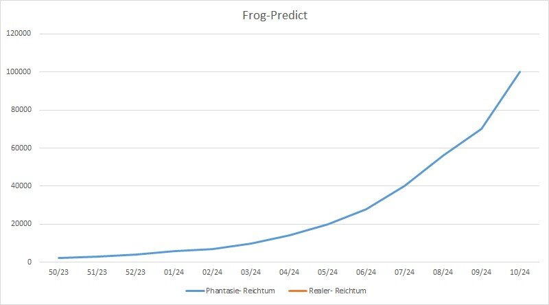 tradefrog Dezember 9, 2023 pkw: was erweckt den anschein, daß froggy "ständig", auf die nase fällt?... weiters sind wir weder im leben, noch beim traden, derart grün, hinter den ohren, oder vor der nase, das man uns "ständig", die verluste der vergangenheit vorwachelt... wir machen "jetzt" ansagen, die zutreffen... der 8%tgl finanzplan wird in groben zügen, von woche zu woche +/-, eingehalten werden... kontostand dzt 1460€... da 5%/75€ davon fehlen, nehmen wir der einfachheit halber 1500€, als basis, für die weiteren 40%: 50.23: 2100€ (ende der woche) 51.23: 3000€ (weihnachten) 52.23: 4200€ (silvester) 1.24: 5800€ (jännerbeginn) 2.24: 7000€ 3.24: 10.000€ 4.24: 14.000€ 5.24: 20.000€ (februarstart) 6.24: 28.000€ (9.2./chinaneujahr)... 7.24: 40.000€ (fastenzeit) 8.24: 56.000€ 9.24: 70.000€ (märzanfang) 10.24:100.000€ (8.3./1monat nach china nj und 1 monat vor tamil nj)... da ab brokerlimit, 40k pro woche generiert werden und 100k am konto, zum traden verbleiben, keine paratrades gemacht werden, kann bereits die jeweilige woche abgebucht werden (natürlich könnten wir auch noch, bis zum tamilischen neujahr, damit warten, um weitere 100k als marginabsicherung am tradekonto zu belassen, aber dieser versuchung werden wir widerstehen)... und etwas bargeld, unterm sofa schadet nie... Diesen Beitrag teilen Link zum Beitrag