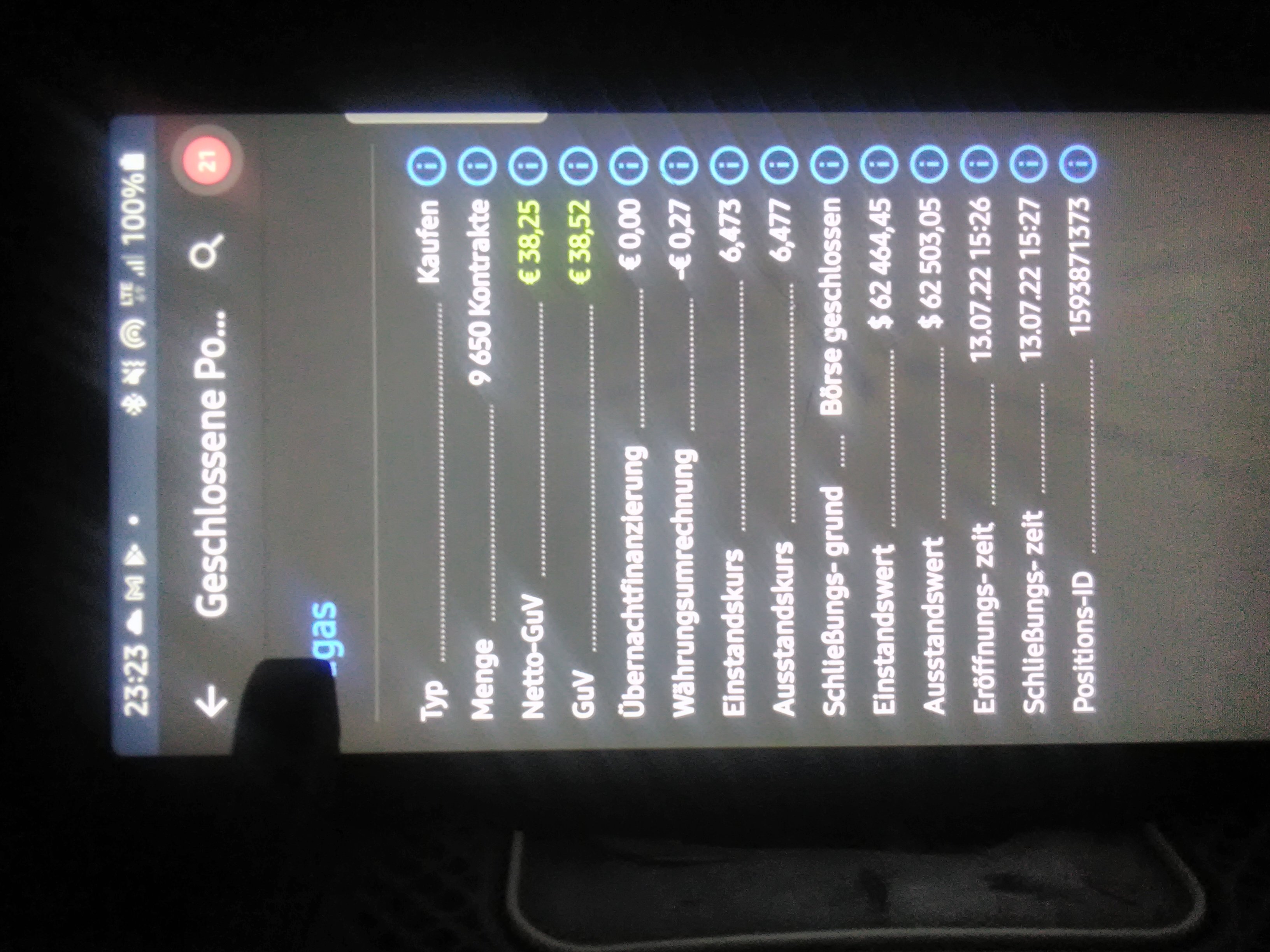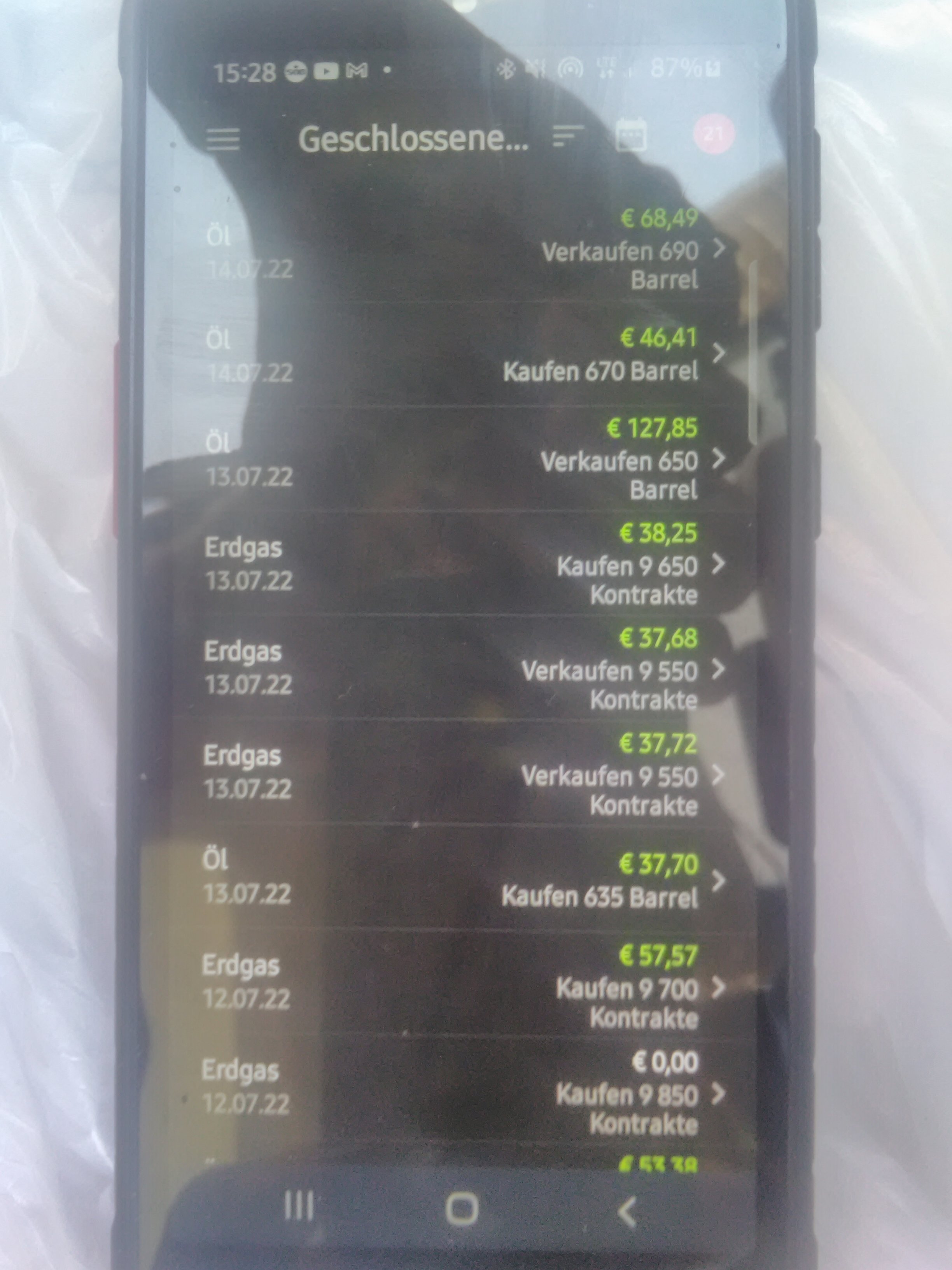 tradefrog Juli 14, 2022 der hauptgrund für diese idee, 20stunden in den chart zu glotzten (statt in die glotze, wie die meisten), da sich immer wieder tradechancen auftup , im laufe eines tages... so wie die 1k cash mit 6k vor 20 min, bei gas, ich aber beschäftigt war... hab mit btc im jänner21 auch 20 h durchgemacht gemacht, aber nur 3 pro tgl, lukriert... war aber mein erstes monat... fetz grad mit libertex, daß man mir mein geld, trotz nicht verifiziertem handelskonto auszahlt, da die 10€ mtl gebühr wg inaktivität, mein lib-konto plündern... hab lib paralell laufen, damit ich zwischen öl und gas switchen kann, wenn sich eine chance ergibt... die plattform ist mir ansonsten, zu umständlich... frag mich heute, wie ich es die 17 tage (die ich unverifiziert traden durfte), geschafft habe, tgl 3pro zu machen... 3pro x 17tage war der gewinn von ca 50 pro, die doku spar ich mir... meine vermutung hat sich bestätigt, daß öl aus der flag nach unten wegbricht, deshalb habe ich gestern die shortchance, vom flagtop gesucht... Diesen Beitrag teilen Link zum Beitrag