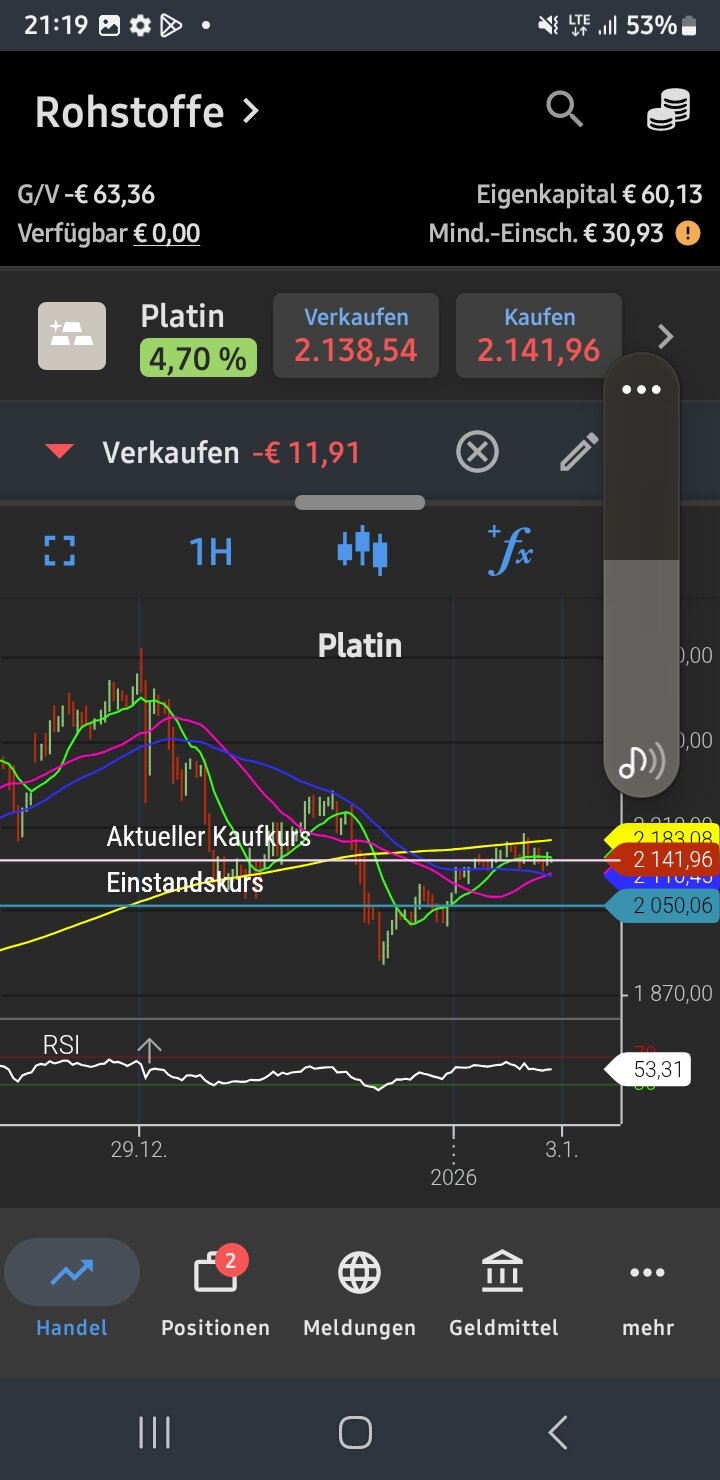 tradefrog 2. Januar Flaschenpfand: Vergleichdt Du die Charts von Silber und Platin, stellst Du folgendes fest: Silber ist Heute gestiegen und wurde wieder abverkauft... steht ÜBER dem 1H Support und wird weiter Steigen... Platin hingegen wagte einen Ausfall und konnte kurzfristig den Widerstand überwinden, landete aber wieder darunter und wird nun zum angesagten Ziel Fallen.. Somit bewegen sich diese 2 Rohstoffe, nur teilweise synchron, haben aber unterschiedliche Sentimente, was ihre Bestimmung betrifft... Wir sagen jetzt nicht, daß Platin keine Nachfrage mehr hat, es ist halt so, daß Silber Alles outperformed hat 2025... das Dumping dzt, wird den Uptrend nicht Stoppen... Diesen Beitrag teilen Link zum Beitrag