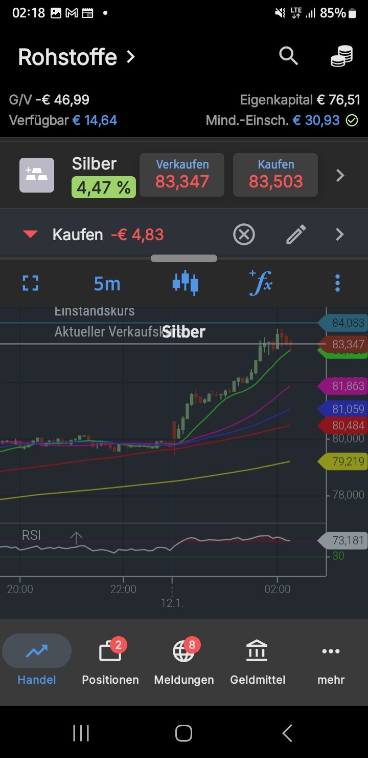 tradefrog vor 12 Stunden Vios: Wir blenden hier nichts aus, folgen nur den Broker Richtlinien, wonach innerhalb eines getradeten Assets KEINE Gegenposi eingenommen werden darf... Wenn wir Silber Shorten wollen, müssen wir Unseren Long VORHER schließen... Wir entschuldigen Uns, falls diese, in früheren Posts (2023?) bereits bekanntgegebene, Tatsache in Unserem Geschwurbel untergegangen ist... Was wir mit Covern des Gesamtminus meinen, ist die Gegenposi mit dem Platinshort... Silber war bereits knapp beim Longentry... Man kann hier erkennen, daß Silber weiter hoch will, Platin aber absacken könnte.. deshalb richten wir Unser Augenmerk auf Silber, um im Fall es IM PLUS absacken möchte, TP zu nehmen... Diesen Beitrag teilen Link zum Beitrag