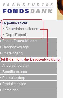 postguru April 25, 2010 Seit diesem Wochenende fehlt bei der FFB im Menü der Eintrag Depotentwicklung. Auch im Depot Report gibt es diese Option nicht mehr ?? Ist das nur bei mir so? Mein Vermittler ist der FSM Weitere Einschränkung der FFB ? Diesen Beitrag teilen Link zum Beitrag