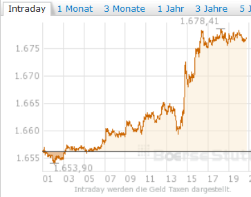 Nun war natürlich da, als ich es geschrieben habe, bei ca $1644. Und schau - Gold steigt. :lol: