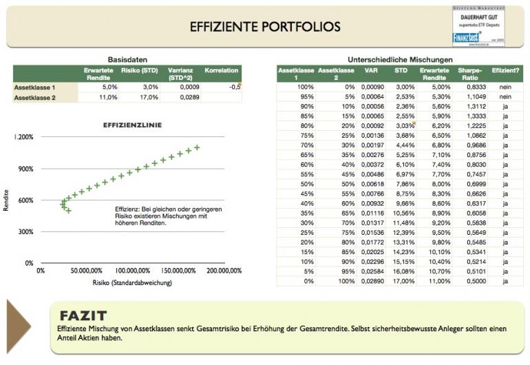 supertobs Januar 7, 2009 · bearbeitet Juni 27, 2015 von supertobs Hallo Forum, ich berechne schon seit einiger Zeit für die wesentlichen Indices meiner Musterdepots Korrelationen, Vergangenheitsrenditen und daraus abgeleitet die Gesamtvolatiliät der Depots. Ebenso habe ich die Effizienzlinien schon bestimmt. Da ich selber nicht mehr so ganz durchblicke, an welchen Stellen im Forum ich das schon alles gepostet habe, werde ich hier alles zusammentragen und nur noch hier updaten. Als erste Version stelle ich rein was ich schon habe. Der Hauptdiskussionsthread zu Korrelationen ist hier: https://www.wertpapier-forum.de/index.php?showtopic=19027 Dieser Thread dient primär als Datenbank für interessierte Leser, als Dokumentation für mich. Warum mache ich den Aufwand? Ich interessiere mich für solche Zusammenhänge, habe das in diversen Büchern schon studiert und wollte die Zahlen einfach mal selber nachrechnen. Dabei habe ich eine Menge lernen können und auch im Portfolioaufbau eingebracht. Ich wollte auch mal Markowitz selbst ausprobieren. Die Ergebnisse haben mich darin gestärkt, zwar grundlegende Ideen der Modernen Portfoliotheorie anzuwenden, aber nicht die mathematisch ausgearbeiteten Markowitz-Optimierung auch 1:1 umzusetzen. Für alle, die gerne mal selber etwas auf Basis meiner Arbeit rechnen wollen, stelle ich hier den Apple Numbers (iWork '09) File zur unter der GPL3 Lizenz zur Verfügung: Ich behalte mir Editierungen zur Straffung des Threads vor (z.B. bei Rückfragen, wenn etwas unklar beschrieben wurde und ich es später aktualisiert habe). Viel Spaß an den Berechnungen! supertobs Versionsgeschichte Diesen Beitrag teilen Link zum Beitrag