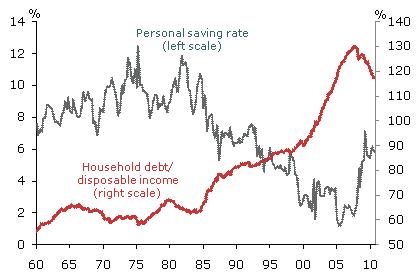 Die Sparqoute der amerikaischen privaten Haushalte ist zuletzt gesteigen und die Verschuldung gesunken. Das wirkt sich wohl kurzfristig dämpfend auf den vom Konsum genährten Wirttschaftsboden aus. Im Umkerhschluß heißt dasfür mich, daß früher oder später der Amerikaner wieder verstärkt konsumieren wird, da Belastungen in Folge geringeren Kreditaufwendungen geschmälert werden.