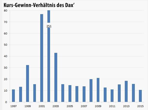 KGV KUV und KCV im Zeitablauf für den DAX