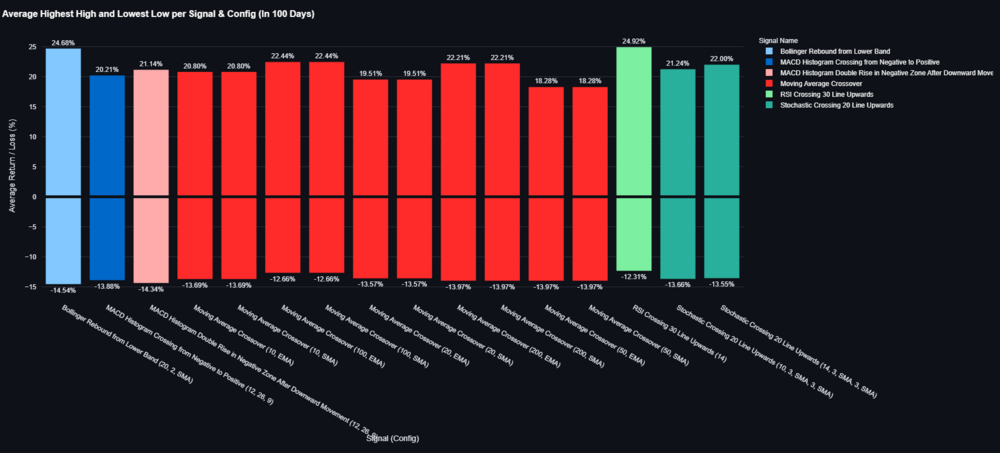 miketrader Februar 24, 2025 Weil oben auch mal der RSI aufkam... Der RSI funktioniert tatsächlich gut, siehe die Abbildungen (dritter Balken von rechts). Wenn der RSI wieder über die 30er Marke steigt ist der durchschnittliche mögliche Gewinn innerhalb der nächsten 50 oder 100 Tage relativ hoch, insbesondere im Vergleich zum potenziellen Verlust. Infineon bewegt sich aber auch schön innerhalb der Bollinger Bänder und die funktionieren ebenfalls bei Infineon sehr gut. Das sieht man ebenfalls, wenn man sich die angehängten Bilder anschaut (Balken ganz links). Gerade auch mit Blick auf jeweils die nächsten 50 oder 100 Tage ist der durchschnittliche mögliche Gewinn wenn der Kurs wieder ins Bollinger Band eintritt verhältnismäßig hoch. Von daher würde ich mich vor allem hierauf konzentrieren, wenn das der Anlagehorizont ist. Hier der direkte Link zur Analyse von Infineon auf ww: https://app.whatworks.trading/link?code=JtvT2HR Diesen Beitrag teilen Link zum Beitrag
