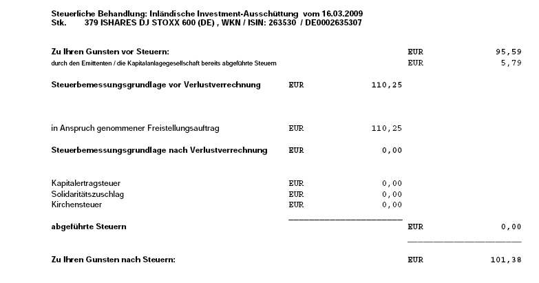 harryguenter März 24, 2009 naja der eBundesanzeiger ist nicht soo schwer: im Suchfeld die Wertpapierkennnummer DE0002635307 eingeben und als Suchbereich auf "Kapitalmarkt" eingrenzen. Scheinbar weisen die nicht jede Ausschüttung aus - die Besteuerungsgrundlagen vom 21.08.08 weisen neben den ausgeschütteten auch ausschüttungsgleiche Erträge auf. Ebenfalls sagt dein Bild aus, dass der Fonds bereits 5,79 an Steuern (für ausschüttungslgeiche Erträge) abgeführt hat, die die Deine Bank wieder gutgeschrieben hat, aber dem Freistellungsauftrag belastet hat. Zusätzlich ist der Weg zur Quelle auch immer ein guter Tip, will sagen: bei Ishares.de findest Du zu dem Fonds auch die Ertragsverwendung und die Aufschlüsselung: http://de.ishares.com/fund/fund_dividends.do?fundId=200059 Vielleicht kannst Du Dir damit ja die Steuerdaten zusammenrechnen Diesen Beitrag teilen Link zum Beitrag