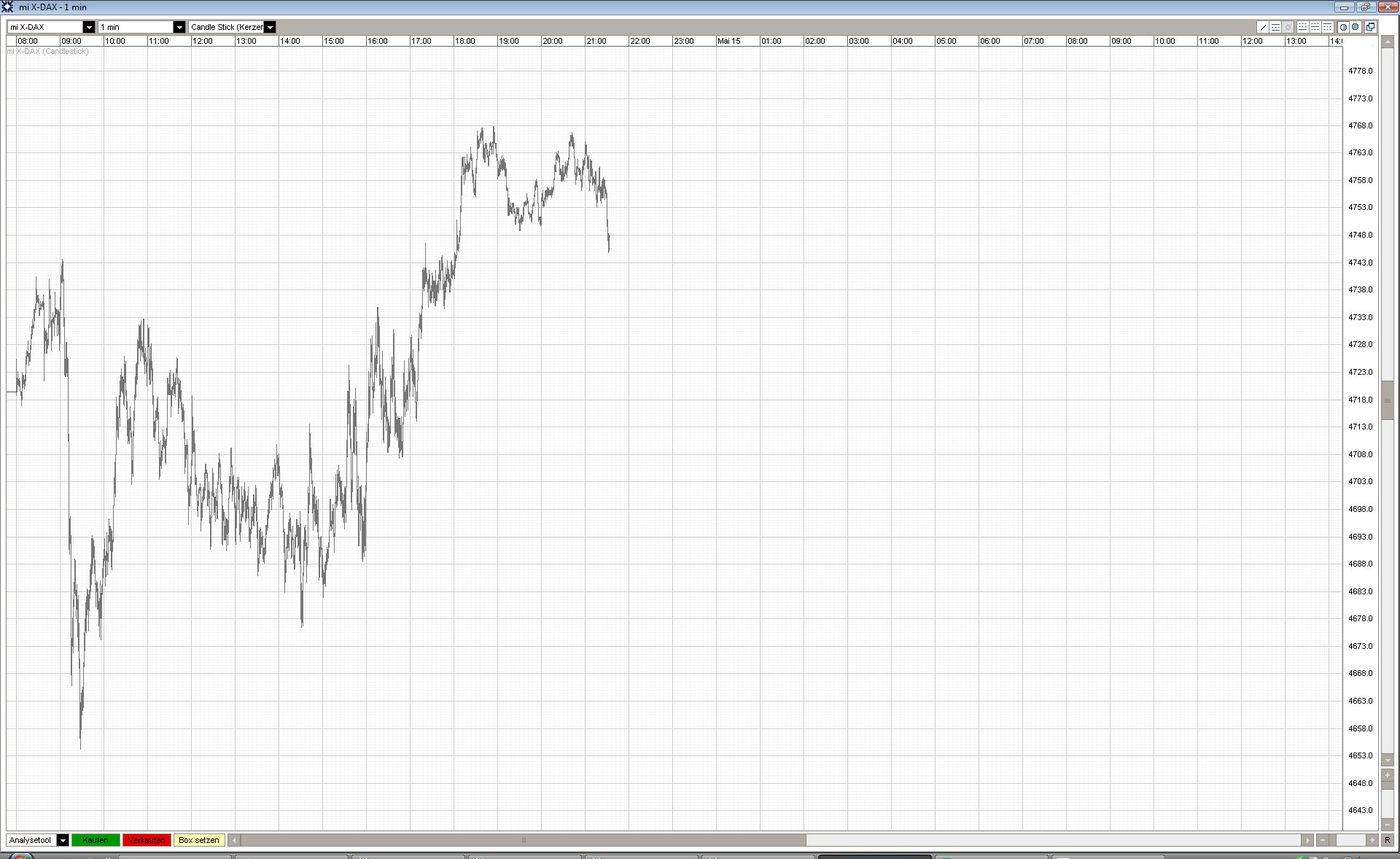 H.B. Mai 15, 2009 Kurze Bemerkung1: Der DAX-Future hat heute punktgenau den Pivot-Punkt von oben angesteuert und hat dann (zunächst) den Weg gen Norden gesucht. Kurze Bemerkung2: Heute ist kleiner Verfallstag, große Bewegungen sind also kaum zu erwarten. Diesen Beitrag teilen Link zum Beitrag
