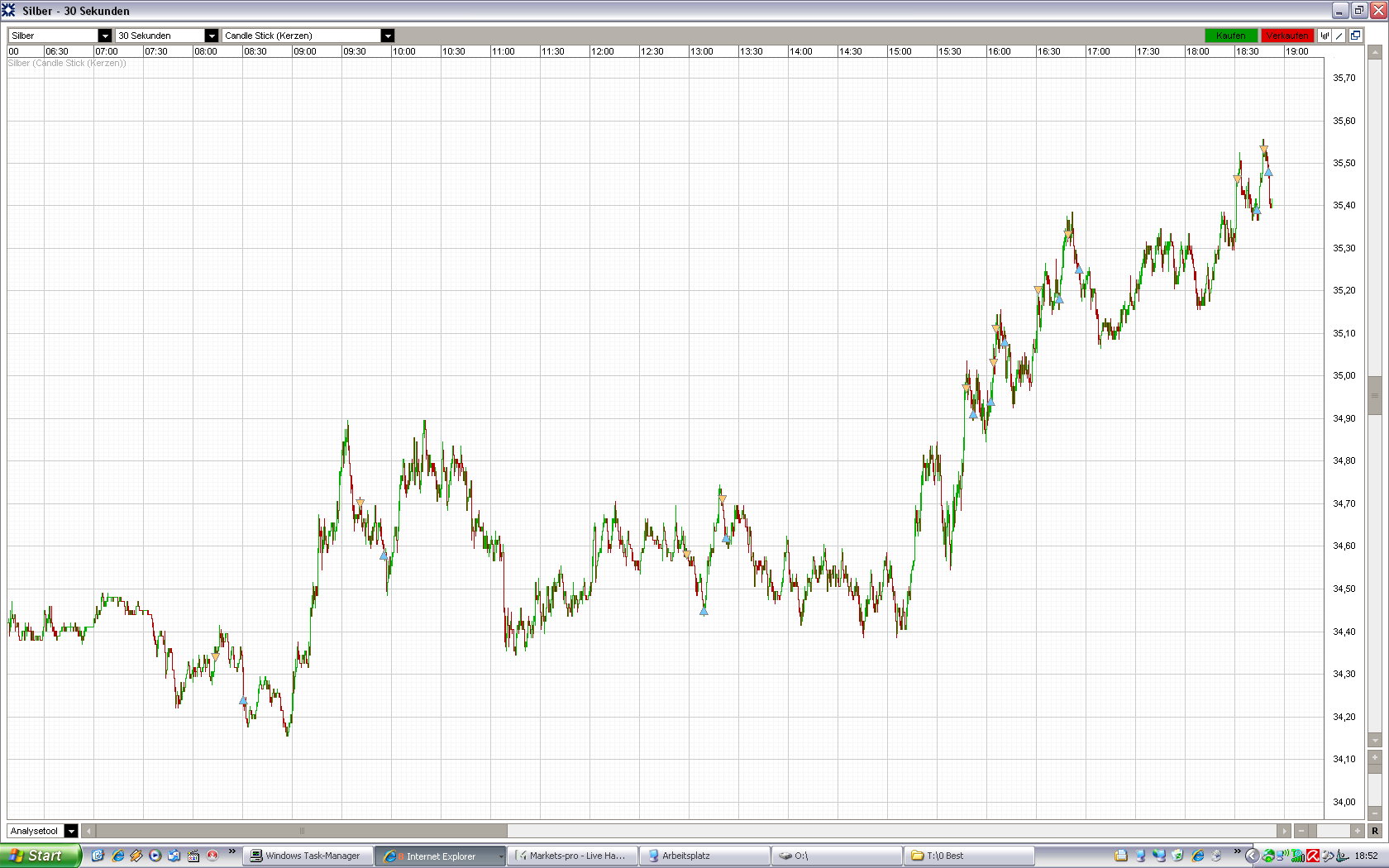Marktfrau Mai 19, 2011 · bearbeitet Mai 19, 2011 von Marktfrau 25 CFD seit 7350 ..... war da was mit Mörderhebel? puh.....den kleinen Absacker durchgeschwitzt, stand gut im Minus für ein paar Minuten. SL = KK jetzt. Bis 10 Uhr war das Tief da..... gilt scheinbar auch heute. Schade, dass nur noch so wenig Trader hier sind So - Marktfrau ist jetzt short auf Silber (nicht zum scalpen). Kleine Position Diesen Beitrag teilen Link zum Beitrag