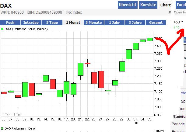 Sthenelos Juli 4, 2011 · bearbeitet Juli 4, 2011 von Sthenelos Stop the Kaffeekränzchen and back to business, langsam müsste es ja jeder begriffen haben, dass Price absolut "Beratungsresistent" ist. Was passiert morgen? Einschätzungen? Ich bleibe mal bei meiner von gestern, es geht auf 7600 + x, evtl. mit Verschnaufpause ein paar Tage seitwärts. Die Ratingsache bzgl. Griechenland muss man beobachten. Bleibt hier Standard & Poor stur und wertet GR nochmals ab, dann könnte uns das nochmal ein paar hundert Punkte kosten + Italien und andere Schwächlinge kommen dann auch nicht ungeschoren davon. Hier eine brauchbare Zusammenfassung: http://de.reuters.co...E7630I320110704 Rocco hat heute auch mal den Nagel auf den Kopf getroffen mit einer ziemlich exakten Einschätzung :- Diesen Beitrag teilen Link zum Beitrag