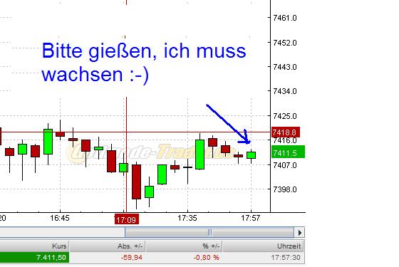 Ich seh schon, das spricht eindeutig für euch, vor allen der Wochenschlußkurs bei 7403, ihr habt die 7400 tatsächlich verteidigen können nachdem´s mit der 7500 nicht so ganz klappen wollte