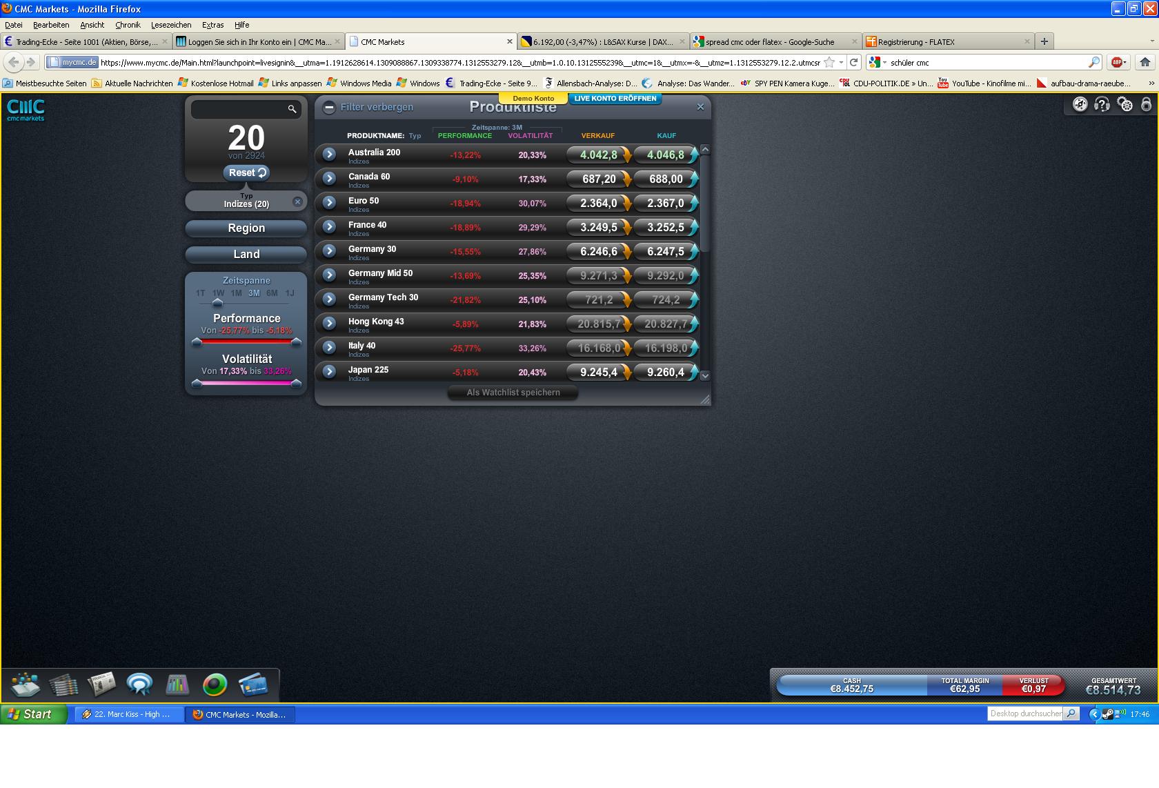 Mr.Price August 5, 2011 · bearbeitet August 5, 2011 von Mr.Price Hobel, das habe ich schon geschrieben.. (Hast du mich noch auf der Ignore?). Im Demokonto kann ich jetzt noch short gehen (7230) und schon 600 Gewinn^^. Diesen Beitrag teilen Link zum Beitrag