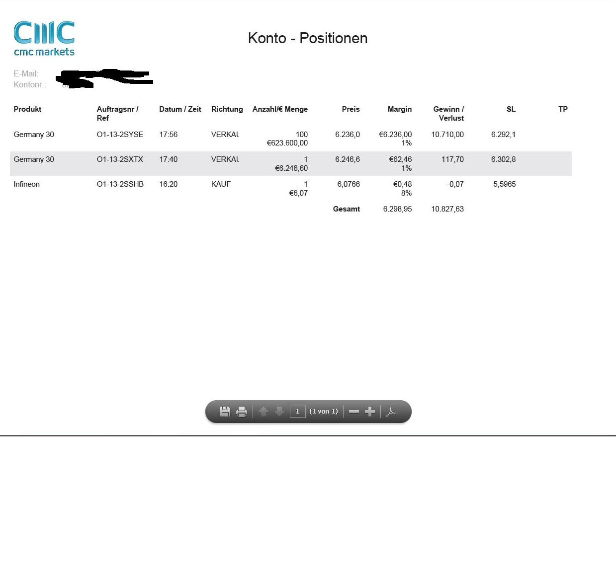 Marktfrau August 5, 2011 · bearbeitet August 5, 2011 von Marktfrau Verkauf 6380 dumm gelaufen - aber vermutlich nicht so ärgerlich wie der frühe Coba ausstieg stimmts marktfrau Ich hab noch einen zweiten Zock auf coba gemacht auf die Arbeitsmarktdaten. Mit kleinerem Volumen versteht sich von selbst. Das hat mir noch einmal 500 Euro gebracht. OK sind zusammen 1700 Euro von 12.000 möglichen heute auf der long Seite. Abgesehen davon, daß bei der vola niemand das maximum auch nur annähernd trifft, läßt sich aber sagen, daß 1700 plus einfach besser sind als 5000 minus, was bei der gegenwärtigen Panik ja auch leicht hätte passieren können Es gibt immer welche, denen ein besserer Zock gelingt, aber ich freue mich über jeden Euro, den die Börse mir gibt. Diesen Beitrag teilen Link zum Beitrag