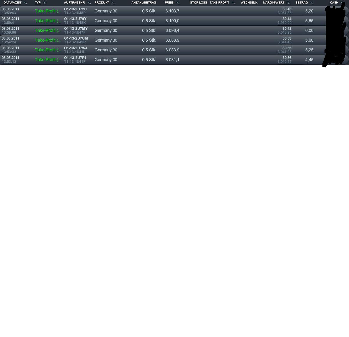 Sthenelos August 8, 2011 · bearbeitet August 8, 2011 von Sthenelos Mist, die verkaufen mal wieder weiter jetzt ohne mich. Pascal bisch du`s? edit. Grad 40 Punkte gescalped, vorhin 30. Schau mer mal was die USboys machen, bevor die starten wollte ich eh wieder raus. edit2 Bei der DB bekommt man schon fast keine Scheine mehr, alles ausgeknockt. Nur noch ein paar wenige übrig und den Spread haben se auch erhöht die Zigeuner. Diesen Beitrag teilen Link zum Beitrag
