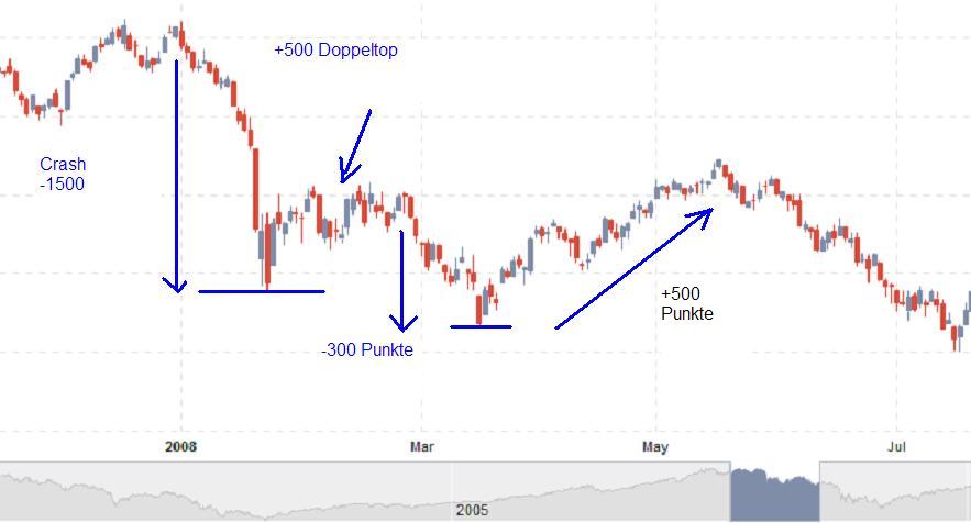 Hobel August 20, 2011 · bearbeitet August 20, 2011 von Hobel Das hast du nicht ausreichend berücksichtigt: Nur läuft es grad viel schneller ab als das letzte Mal, möglicherweise weil die Leute sich daran erinnern und schneller sein wollen als die anderen Deshalb: werden die gegenläufigen Aufwärtsbewegungen auch viel schneller kommen, als mancher denkt und unter Umständen auch stärker ausgeprägt sein. Was aber noch viel wichtiger ist: Dieses Mal werden Rezessionsängste gespielt (Es wird also ein mögliches Szenario vorweggenommen, dessen Wahrscheinlichkeit nicht klein ist, aber noch nicht eingetreten ist), während 2008 die Rezession Tatsache war. Es kommt jetzt darauf an, ob die kommenden Konjunkturdaten den Phily Fed -30 auch bestätigen werden. Stimme ich soweit zu. Aber ...... das grosse Geld ist aus dem Markt raus .... und die Bewegungen hoch werden nicht von Langfistinvestoren gemacht. Als der Markt 2008 abstürzte war auch noch keine Rezession da. Die kam erst danach und dauerte nur eine erstaunlich kurze Zeit. 2008-2009 runter, dann wieder steil rauf. Eine echte Rezession hatten wir 2000 - 2400, die dauerte 4 lange Jahre mit fallenden Kursen. Ich muss trotzdem den schlimmsten Fall annehmen, dass es dazu kommt, denn die Börse hat selten unrecht. Und ich muss mich Ohrfeigen, denn die Daten waren schon lange schlecht, nur hat die Börse sie ignoriert, die glaubten alle noch an die 8000. Nächste Woche stehen jede Menge Konjunkturdaten an, besonders Dienstag bittet Onkel ben wieder zum Gebet. Steigen die Kurse vorher, rechne ich mit einem Absturz danach, fallen sie vorher mit einer Erholung. QE3 wird nicht kommen, weil die vorher auch nix gebracht haben. Aber eines würde die Kurse befügeln: Der Eurobond. Dann ist die Schuldenkrise Europas erstmal vom Tisch. Wie schon gesagt: ich stoppe hiermit Intraday Trades, weil die in solchen Märkten nur Verluste erzeugen. Läuft es noch, lässt man es laufen in der Hoffnung noch mehr Gewinne zu machen, sackt es dann ab stoppt man bei Null oder sonst im Minus. Das führt zu nichts. Man muss einen Berreich von einigen hundert Punkten abdecken können ohne platt zu sein. Den Bereich 5100 bis ca 5800 werden wir noch oft genug sehen denke ich. Mit cmc kein Problem, ich setze nur 150 Euro ab Montag ein. Diesen Beitrag teilen Link zum Beitrag