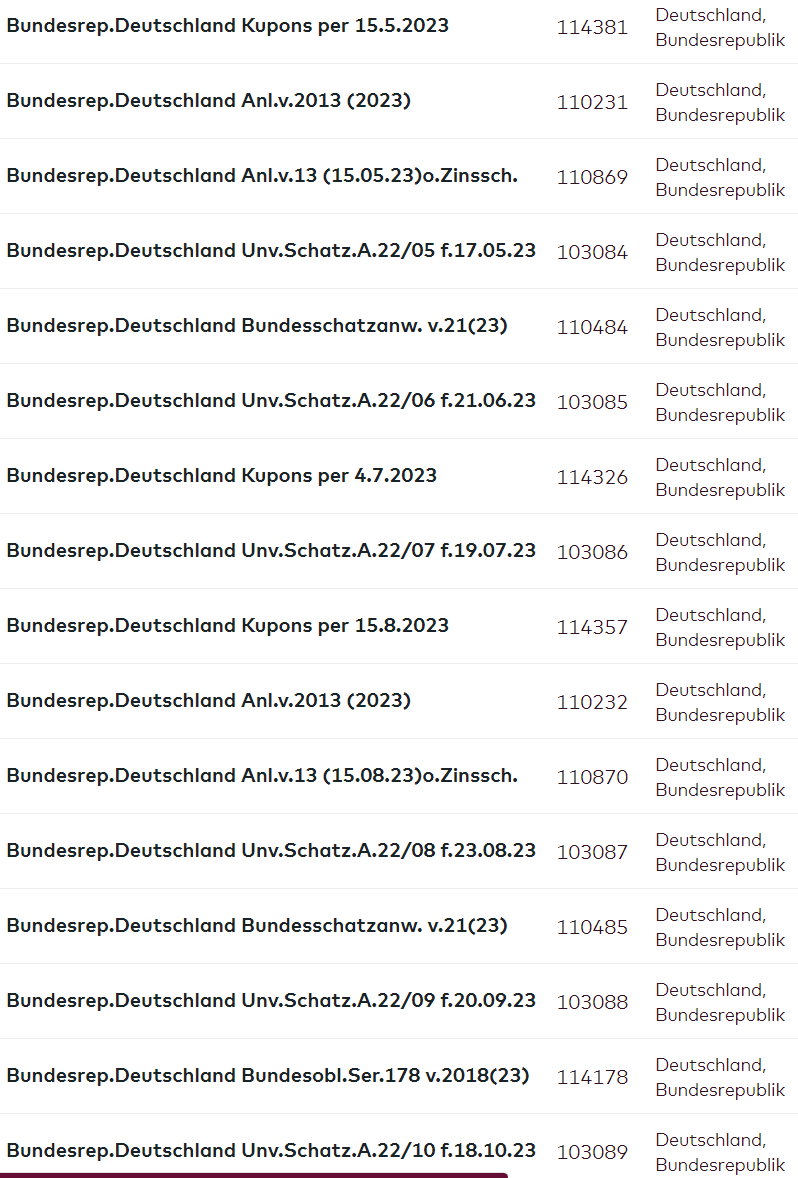 In die Onvista-Aufstellung haben sich noch sog. gestrippte Bundesanleihen hineingemogelt, die keine praktische Bedeutung für uns haben.