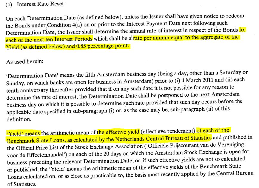 nobanker August 27, 2013 Bestands-Arrondierung und Einstands-Verbilligung 134182 5,18% Ägon kumu 1996(08/18/und.) zu 77,5 131247 4,26% Ägon kumu 1996(11/21/und.) zu 69 Hab ich das richtig verstanden, dass die beiden Aegons 10Y Holland + 85 bp zahlen und zwar immer für 10 Jahre den gleichen Satz? D.h. die 134182 zahlt 5,18% bis 2018 und die 131247 4,26% bis 2021? Diesen Beitrag teilen Link zum Beitrag