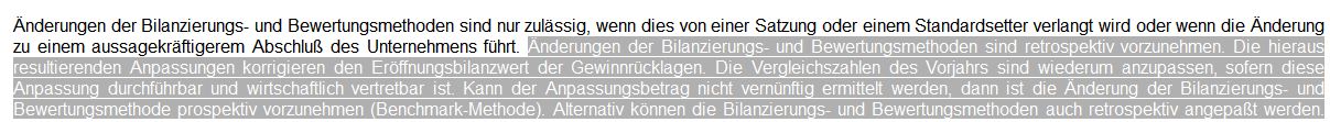 BondWurzel August 15, 2011 · bearbeitet August 15, 2011 von BondWurzel Nein, definitiv nicht, da gibt es keine freien Interpretationen. Nein. Das würde nun ewig so weitergehen, daher will ich es etwas abkürzen, aber wenn ein Bilanzierungsstand geändert wurde, dann werden die Zahlen aus dem Vorjahr zu Vergleichszwecken angepasst und dann kommt es eben zu dem vom Fragensteller geäußerten Phänomen. Das gleiche ist auch bei einer nennenswerten Änderung des Konsolidierungskreises der Fall. Das ist ja zahlreich beobachtbar, ich weiss nicht, was es da zu bezweifeln gibt. Bilanzierungsstandards werden nur ganz selten geändert und dann werden Paralellabschlüsse erstellt mit Übergangszahlen und entsprechenden Ausweisen. Dies geschieht ganz selten und nicht oft und muss ganz besonders dargestellt werden. Siehe auch meine Links und - ansonsten gebe ich es auf. Grundsätzlich - der Konsolidierungskreis ändert sich nicht im alten JA. und die Zahlen auch nicht, wenn im neuen Jahr Änderungen vorkommen, ansonsten gilt mein erster Satz analog. Im angegebenen Fall gibt es keine besonderen Vermerke. Zum konkreten Fall: In dem jetzigen Fall stimmen die Bilanzzahlen/Vorjahr ja überein denke ich, nur die KeyFacts-Brosachüre nicht. Ansonsten - es gibt eine Ausnahme: Formelle Bilanzkontinuität Die formelle Kontinuität schreibt vor, dass stets dieselben Gliederungsbegriffe und -schemata zu verwenden sind. Bei der Bilanzidentität (Bilanzenzusammenhang) wird gefordert, das die Eröffnungsbilanz der Rechnungsperiode mit der Schlussbilanz der vorangegangenen Rechnungsperiode übereinstimmt (§ 252 Abs. 1 Nr. 1 HGB). Der Anfangsbestand einer Rechnungsperiode muss danach mit dem Endbestand der vorherigen Rechnungsperiode übereinstimmen. In der Eröffnungsbilanz müssen die Wertansätze eines Geschäftsjahres mit den angesetzten Werten der Schlussbilanz des vorhergehenden Jahres identisch sein. Damit wird die Grundvoraussetzung der Vergleichbarkeit, sowohl im Zeitablauf als auch bei verschiedenen Unternehmen, zum gleichen Zeitpunkt geschaffen. Der Grundsatz der formellen Bilanzkontinuität wird nach einer steuerlichen Betriebsprüfung allerdings durchbrochen. Führt diese Betriebsprüfung zu Änderungen, so muss die letzte noch änderbare Bilanz angepasst werden, während die Vorjahresbilanz nicht mehr verändert wird. Dadurch stimmt der Anfangsbestand mit dem Endbestand der Vorperiode ausnahmsweise nicht überein. Falls das so oft vorkommt nach deiner Meinung, stelle mir bitte ein Beispiel ein. HGB § 265 Allgemeine Grundsätze für die Gliederung Fassung vom 29. Mai 2009 (1) Die Form der Darstellung, insbesondere die Gliederung der aufeinanderfolgenden Bilanzen und Gewinn- und Verlustrechnungen, ist beizubehalten, soweit nicht in Ausnahmefällen wegen besonderer Umstände Abweichungen erforderlich sind. Die Abweichungen sind im Anhang anzugeben und zu begründen. (2) In der Bilanz sowie in der Gewinn- und Verlustrechnung ist zu jedem Posten der entsprechende Betrag des vorhergehenden Geschäftsjahrs anzugeben. Sind die Beträge nicht vergleichbar, so ist dies im Anhang anzugeben und zu erläutern. Wird der Vorjahresbetrag angepaßt, so ist auch dies im Anhang anzugeben und zu erläutern. (3) Fällt ein Vermögensgegenstand oder eine Schuld unter mehrere Posten der Bilanz, so ist die Mitzugehörigkeit zu anderen Posten bei dem Posten, unter dem der Ausweis erfolgt ist, zu vermerken oder im Anhang anzugeben, wenn dies zur Aufstellung eines klaren und übersichtlichen Jahresabschlusses erforderlich ist. (4) Sind mehrere Geschäftszweige vorhanden und bedingt dies die Gliederung des Jahresabschlusses nach verschiedenen Gliederungsvorschriften, so ist der Jahresabschluß nach der für einen Geschäftszweig vorgeschriebenen Gliederung aufzustellen und nach der für die anderen Geschäftszweige vorgeschriebenen Gliederung zu ergänzen. Die Ergänzung ist im Anhang anzugeben und zu begründen. (5) Eine weitere Untergliederung der Posten ist zulässig; dabei ist jedoch die vorgeschriebene Gliederung zu beachten. Neue Posten dürfen hinzugefügt werden, wenn ihr Inhalt nicht von einem vorgeschriebenen Posten gedeckt wird. (6) Gliederung und Bezeichnung der mit arabischen Zahlen versehenen Posten der Bilanz und der Gewinn- und Verlustrechnung sind zu ändern, wenn dies wegen Besonderheiten der Kapitalgesellschaft zur Aufstellung eines klaren und übersichtlichen Jahresabschlusses erforderlich ist. (7) Die mit arabischen Zahlen versehenen Posten der Bilanz und der Gewinn- und Verlustrechnung können, wenn nicht besondere Formblätter vorgeschrieben sind, zusammengefaßt ausgewiesen werden, wenn 1. sie einen Betrag enthalten, der für die Vermittlung eines den tatsächlichen Verhältnissen entsprechenden Bildes im Sinne des § 264 Abs. 2 nicht erheblich ist, oder 2. dadurch die Klarheit der Darstellung vergrößert wird; in diesem Falle müssen die zusammengefaßten Posten jedoch im Anhang gesondert ausgewiesen werden. (8) Ein Posten der Bilanz oder der Gewinn- und Verlustrechnung, der keinen Betrag ausweist, braucht nicht aufgeführt zu werden, es sei denn, daß im vorhergehenden Geschäftsjahr unter diesem Posten ein Betrag ausgewiesen wurde. Fehlen entsprechende Hinweise und besondere Vermerke müssen die Zahlen übereinstimmen. Diesen Beitrag teilen Link zum Beitrag