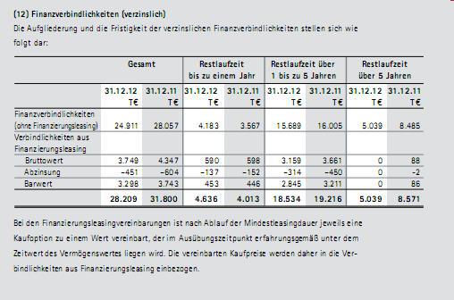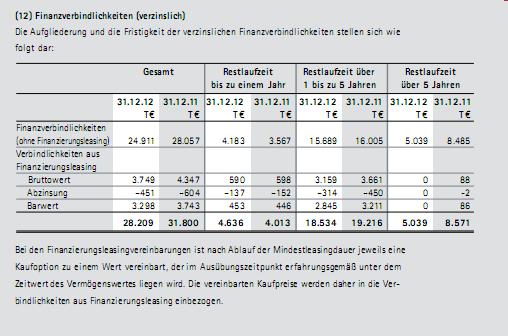 In der Bilanz werden kurz- und langfristige verzinsliche Finanzverbindlichkeiten aufgeführt. Diese setzen sich wie folgt zusammen: