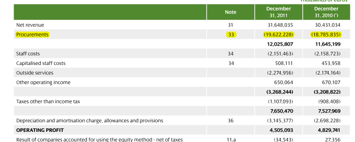 Im Geschäftsbericht 2011 von Iberdrola (Mein Link) steht im Income Statement auf Seite 12 der Punkt "Procurements: