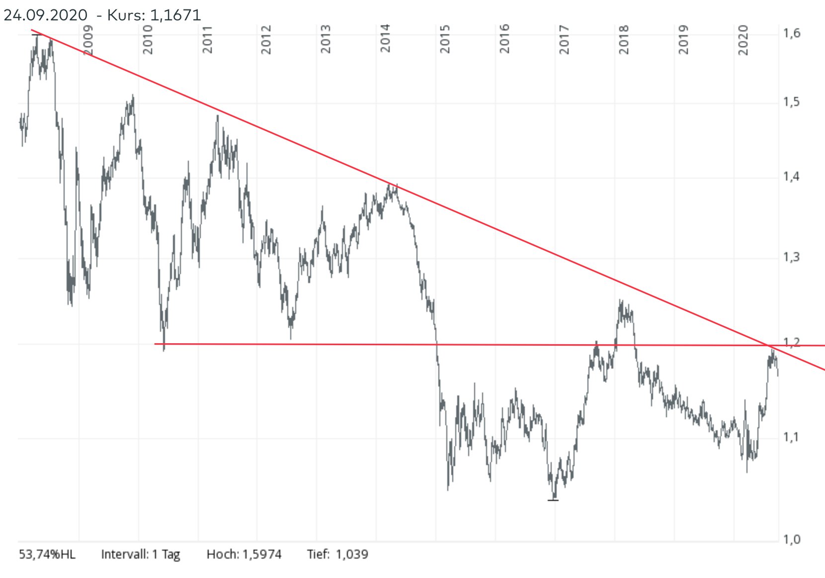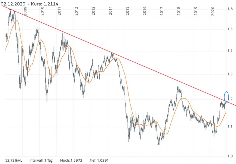 Der Euro befindet sich immer noch im langfristigen Abwärtstrend: