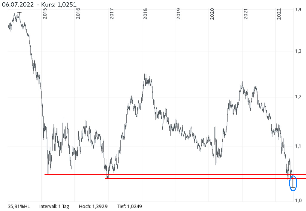 pete1 Juli 5, 2022 20y Tief des Euro gegenüber des Dollars. Rezessionsängste drücken und drücken. Diesen Beitrag teilen Link zum Beitrag