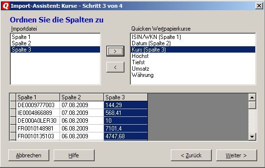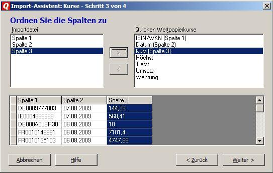 Padua August 9, 2009 Wie genau funktioniert denn der Import in Quicken? Wie sehe ich welches Format die csv-Datei haben muss? Kannst du mir da mal eine Beispiel-csv-Datei zukommen lassen? Das Format in Excel (CSV-Format) ist eigentlich nicht ganz so wichtig, weil die Definition "welche Spalte soll wohin" erst in Quicken vorgenommen wird. Wichtig ist nur, dass die Quicken-Datensätze eindeutig sein. Ich nutze eine Tabelle, bei der die Spalten aus ISIN Kursdatum Kurswert besteht. Beispiel: Die Daten sind jetzt für den Quicken-Import bereit gestellt. Wichtig ist, dass Du die Datei in Excel im CSV-Format abspeicherst. Die Import-Funktion rufst Du nun in Quicken über den Weg "Datei - Import/Export - Quicken-Daten importieren" auf. Jetzt wählst Du die Vorlage "Kurse auf" und wählst anschließend die zu importierende CSV-Datei aus und klickst auf "weiter". Wichtig wird es dann noch einmal im "Import-Assistent Kurse - Schritt 3 von 4", weil Du hier die Spalten der Import-Datei sauber den Definitionen der Quicken-Wertpapierkurse zuordnen musst. Dazu hier das Beispiel: Im Assistenten - Schritt 4 - setzt Du nun noch bei "Vorlage speichern" einen Haken und gibst dem ganzen einen Namen. Das war's. Weil Du Dir damit eine eigene Importfunktion geschaffen hast, entfällt zukünfitg in Quicken diese ganze Prozedur. Also dann nur noch Aufruf "Datei - Import/Export" usw., dabei natürlich Deinen Vorlagennamen auswählen und ruckzuck hast Du die Kurse importiert. Ich erspare mir so einen Meng an Arbeit. Wenn man dann noch die CSV-Datei in Excel aus Webabfragen erzeugen lässt, ist das ganze wirklich ein Kinderspiel. Gruß Padua Diesen Beitrag teilen Link zum Beitrag