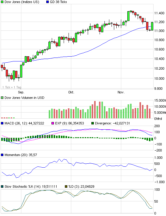 markymark November 18, 2010 Wenn wir Glück haben, geht der Dow nun wieder in den Bullenmodus über und die Konsolidierung ist beendet. Jedenfalls sieht es momentan recht dafür aus.... Diesen Beitrag teilen Link zum Beitrag