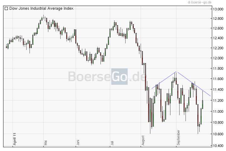 markymark September 28, 2011 · bearbeitet September 28, 2011 von markymark Mal sehen, als kleine Spielerei mal ein Dach reingezeichnet. Ist ne Shortspekulation...Die Nachrichtenlage ist hier mitentscheidend... Die längeren Dochte waren in letzter Zeit eher ein Shortsignal Ob das Dach nun ein "allgemein anerkanntes" Chartsignal ist oder nicht, ein Shortsignal ist es nicht unbedingt. Interessanter (und wichtiger) ist die Länge der täglichen Kerzen, also die Spanne zwischen Open und Close. Das ist seit August ein nahezu tägliches Phänomen -- übersetzt bedeutet das enorme Unsicherheit. Das kann man auch am VIX ablesen. Eine Richtung ist damit nicht angezeigt. Das volatile Chartbild der letzten Wochen kommt einer umgekehrten Untertasse recht nahe. Demnach würde das letzte Tief wieder angetestet und gegebenenfalls unterschritten. Das wollte ich auch mit meinem Gedankenspiel zum Ausdruck bringen. Ich gebe dir in deiner Ausführung natürlich Recht Diesen Beitrag teilen Link zum Beitrag