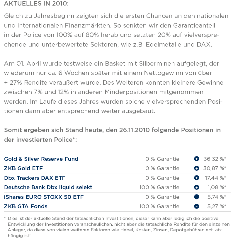 mirrorman Dezember 19, 2010 · bearbeitet Januar 29, 2011 von Thomas Du hast recht, das sind nur die Renditen im laufenden Geschäftsjahr. Wobei es bedenklich ist, dass man von 2009 bis 2010, als der DAX um gute 20% gestiegen ist und die Zinsen auf einem historischen Tief waren, nicht den Darlehenszins und die Kosten reingewirtschaftet hat. Tja, er wollte ja nicht den Aktienmarkt hebeln, sondern eben Garantieprodukte... Der Kredit ist, wenn ich das richtig gelesen habe, auf Monats-Ebene, d.h. man hat sich nicht im niedrigen Zinsumfeld einen langfristigen Kredit gesichert, das hätte ich eigentlich gedacht, als ich den Prospekt zum ersten Mal gelesen hab. Bei steigenden Zinsen ist das Spiel so ja schnell aus. Wenn ich richtig gelesen habe, gibt's die sehr guten Kredit-Konditionen ja auch nur, weil die Garantiefonds selbst als Sicherheit dienen, da mussten die sich bisher auch danach richten, was die Bank als Sicherheit akzeptiert. Wenn jetzt doch in riskantere Anlagen investiert wird, müsste das bedeuten, dass keine großer Hebel gefahren werden kann. (Ist bisher aber auch schon nicht getan worden.) Tja, wirklich wissen, wie nach der Vertragsänderung investiert wird, kann man wohl frühestens im Dezember 2012, wenn der 2011er Finanzbericht rauskommt. Aber bis dahin hat sich der GHP vielleicht schon wieder umfirmiert. Das spricht natürlich für einen Versicherungsvertreter der überall als Finanzprofi angeprahlt wird... Zumindest seitens der CD Ich bin ganz sicher nicht nachtragend - aber was werden die ganzen verblendeten Kommandisten sagen, wenn sie feststelllen,das sie auf das derbste über den Tisch gezogen worden sind ? Naja Mitleid ? Nein nicht wirklich - wir, die die Fakten preisgeben sind eh die bösen und wir alle arbeiten eh zusammen und auch ganz sicher für jede negative Aussage bezahlt worden Diesen Beitrag teilen Link zum Beitrag