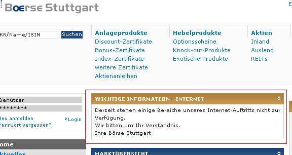 vanity August 29, 2009 · bearbeitet August 29, 2009 von vanity Schön, ich dachte es liegt an meinem Rechner das die Hp der SG Sttg seit gestern eine sehr schlechte Ladezeit entwickelt Da du zu sehr mit SaarLB beschäftigt warst, ist dir das entgangen: Wenn ab Montag ordentlicher Umsatz in HIE7 kommt, können sie sich einen neuen Server leisten. Umsätze bei diesem BLB-Tier sind nicht zielführend, da dies nur in FFM gehandelt wird. Diesen Beitrag teilen Link zum Beitrag