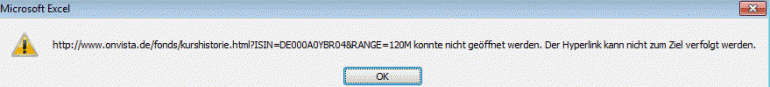 Das ist kein Problem vom Spreadsheet, sondern von der Excel-Webabfrage und/oder OnVista. Habe den Effekt auch in meinem eigenen Spreadsheet, wenn er alle aktualisieren will (beim Öffnen oder per Button). Abhilfe: Wenn er hängt "ESC" drücken und den Fehler per "OK" bestätigen, dann gehts weiter. Der Kurs der sich nicht aktualisieren will wird dann übersprungen und kann per Rechtsklick auf den Datenbereich -> "Aktualisieren" einzeln aktualisiert werden (das geht komischerweise ohne Probleme...).
