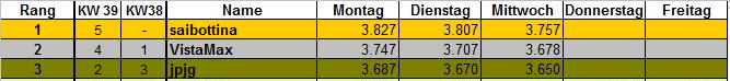 VistaMax September 27, 2009 Wettspiel: DAX intraday tippen Herzlich Willkommen zum DAX intraday tippen! +++ Jeder ist herzlich eingeladen +++ GEÄNDERTE Spielregeln!!!!!!!!!!!!!! Spieldauer: 1 Woche / tägliche Tippabgabe Wann wird getippt: tägliche Tippabgabe bis 02.00 Uhr möglich Ein Einstieg während der Tippwoche ist möglich! Was wird getippt: DAX a. DAX Schlussstand des folgenden Tages b. DAX Höchststand des folgenden Tages Punkteberechnung: Die Start-Punktezahl beträgt 5.000 Punkte Beispiel: a. Schlusstand: Tipp: 4.345 ------------ Istwert: 4.300 Differenz: 45 b. Höchststand: Tipp: 4.380 ----------------- Istwert: 4.400 Differenz: 20 45 + 20 = 65 Punkte Abzug Punktezahl nach dem ersten Tipptag: 5.000 Startpunkte - 65 = 4.935 Punkte Wer am Freitag die höchste Gesamtpunktzahl hat, ist der Sieger !!! Sollte jemand an bestimmten Tagen nicht tippen können, hat er die Möglichkeit seinen Tipp vorab abzugeben. Tage ohne Tippabgabe werden mit dem höchsten Tagespunktabzug + 1 bewertet. Sonderpunkte: Tippabgabe zwischen 24.00 Uhr - 02.00 Uhr = 25 Strafpunkt Tippabgabe vor 18.00 Uhr = 25 Gutschriftpunkte (außer Sonntag Abend) Genaue Punktzahl eines Tageswertes getippt = 50 Gutschriftpunkte Gewinn: Der Sieger der jeweiligen Woche erhält unter seinem Avatar den DAX-Intraday-Tippen-Wanderpokal Gruss VistaMax Diesen Beitrag teilen Link zum Beitrag