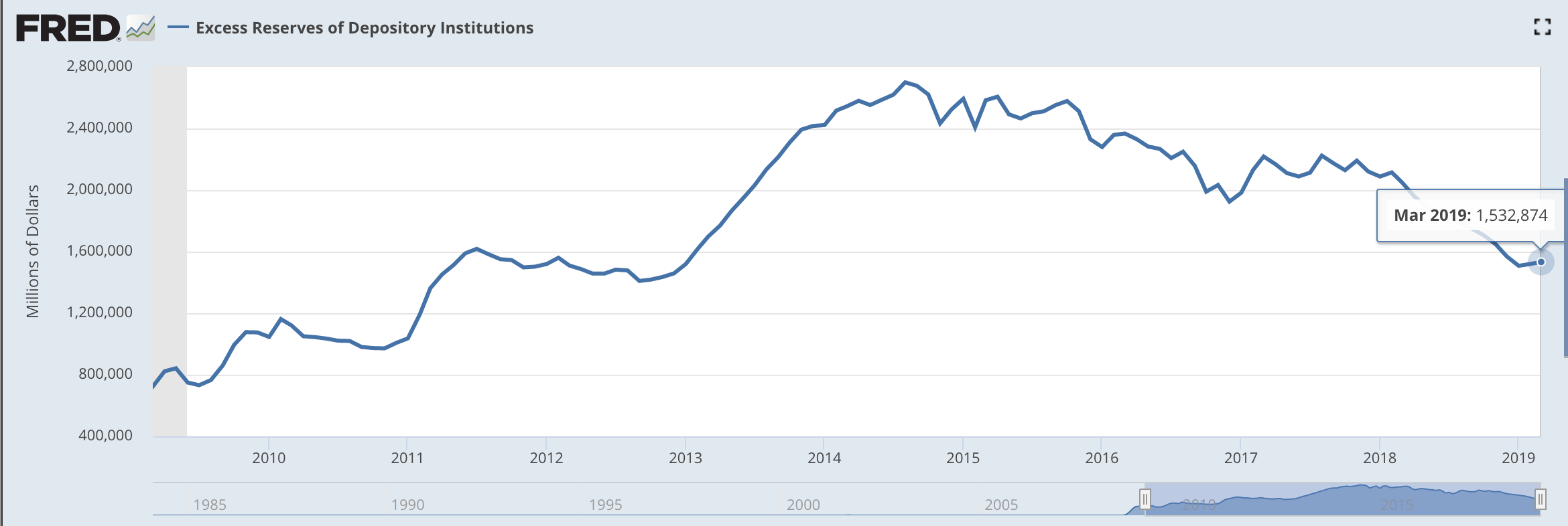 Up_and_Down April 19, 2019 · bearbeitet April 19, 2019 von Up_and_Down Am 15.4.2019 um 18:16 von mordek: Kommt man irgendwie an deren Daten ran? Mich würde ein Abgleich dieser 38% z.B mit dem All-World- oder World-Index interessieren. Zitat aus der Quelle: "(we don’t have the raw data, only the graphic)" Also leider nein. Zumindest nicht auf diesem Weg. Man kann aber auch einen Aktienscanner nehmen, S&P 500 Aktien auswählen, nach KGV filtern und schauen wie viele kein KGV haben (weil die Gewinne negativ sind). Unter den großen Unternehmen ist das bei weitem nicht so problematisch. Aber wenn der Russell 2000 ein Indikator für den amerikanischen Mittelstand als ganzer ist, dann summieren sich die vielen vielen kleinen Unternehmen zu einem handfesten Problem. ____________________________________________________________________________________________________________________________ Mal was anderes! Habe hier noch etwas gefunden, was mich neugierig gemacht hat: FED Die Excess Reserves im US-Bankensystem, also den Anteil der Reserven der Banken, welche über die vorgeschriebenen Rücklagen hinausgehen und welche bei der Federal Reserve gegen Zinsen darüber hinaus eingelagert worden sind. Man kann sehen, dass diese Einlagen mit der Finanzkrise explodiert sind (siehe untere Leiste). Die Graphik zeigt die letzten 10 Jahre. Die Einheiten sind in Millionen US-Dollar. Derzeit also stehen wir bei 1533 Milliarden $ an Excess Reserves, Höhepunkt war im August 2014 mit 2700 Milliarden $. Und jetzt der S&P 500 in den letzten 5 Jahren. Hier allerdings nicht als Indexstand, sondern angegeben in Marktkapitalisierung: Ycharts Die Excess Reserves begannen sich stark zu reduzieren, beginnend im November/Dezember 2015. Wenige Monate später begann der S&P zu steigen und legte innerhalb der kommenden 2,5 Jahre um etwa 1000 Punkte zu. In Summen ausgedrückt: Die Excess Reserves sinken um 1000 Milliarden und die Marktkapitalisierung des S&P steigt um 6000 Milliarden. Wenn die Annahme korrekt ist, dass ein signifikanter Anteil der 1000 Milliarden seinen Weg in den Aktienmarkt gefunden hat, dann wäre dies ein signifikanter Nachfragefaktor, um die Preise von Aktien zu treiben. Dann gibt es noch die Aktienrückkäufe der Unternehmen selbst: Yardeni Das sind knapp 500-600 Milliarden US-Dollar pro Jahr gewesen und jüngst durch die Steuerreform und die zusätzlich verfügbaren Barreserven der Unternehmen stiegen die jährlichen Aktienrückkäufe auf einen Rekordstand von ca. 800 Milliarden. Das sind also ungefähr weitere 2,5 Milliarden Dollar über den oben angesprochenen Zeitraum von 2016 bis 2019. Wer also trägt die Hausse weiter, wenn die Unternehmen nicht mehr genug Cash haben, z.B. weil sie sich mittlerweile zu deutlich höheren Zinssätzen refinanzieren müssen als noch 2016? Und wann hören die Excess Reserves auf zu sinken? Bzw., hat jemand eine andere Erklärung dafür wo das Geld dafür hingeflossen ist als in die Finanzmärkte (neben Aktien ist gewiss auch viel in Anleihen geflossen). Aber egal ob das Kapital nun in Anleihen oder direkt in Aktien fließt. Das Endresultat sind höhere Aktienkurse, weil die höhere Nachfrage nach Unternehmensanleihen die Rendite senkt, ergo die Refinanzierungskosten und somit die Kapitalflüsse der Unternehmen erhöht. So oder so ist ein Großteil der Aktiengewinne auf dieses Großkapital zurückzuführen (These). Wer also jetzt noch in den breiten Markt investiert rechnet mit mehr Steuersenkungen für mehr Aktienrückkäufe (und höhere Dividenden), eine Reduzierung der Excess Reserves gegen null, Zinssenkungen in absehbarer Zeit? Alles zusammen? Andernfalls sehe ich da in absehbarer Zeit ein Ungleichgewicht zwischen Angebot und Nachfrage nach Aktien entstehen. Diesen Beitrag teilen Link zum Beitrag